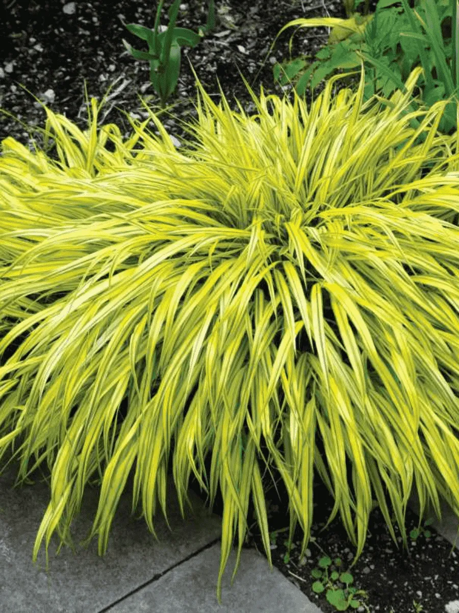 Хаконехлоа большая 'Aureola' — изысканное декоративное растение семейства Злаковые (Poaceae), покоряющее сердца садоводов своей утончённой красотой и элегантностью форм. Это многолетняя трава высотой до полуметра, обладающая живописной каскадной структурой, словно струящаяся золотистая вода, плавно ниспадающая над поверхностью земли. Листья узколанцетные, длиной около 15–20 см, окрашены в нежную зелёно-жёлтую палитру с тонкими золотыми штрихами, придающими растению особую воздушность и лёгкость. Цветёт хаконехлоа мелкими невзрачными цветами, собранными в метельчатые соцветия, однако именно её листва становится главным украшением сада, особенно осенью, когда приобретает тёплые медово-золотистые оттенки. Растение предпочитает полутень и влажные плодородные почвы, прекрасно переносит зимовку даже в суровых климатических условиях средней полосы России, создавая неповторимый акцент в ландшафтных композициях и миксбордерах.