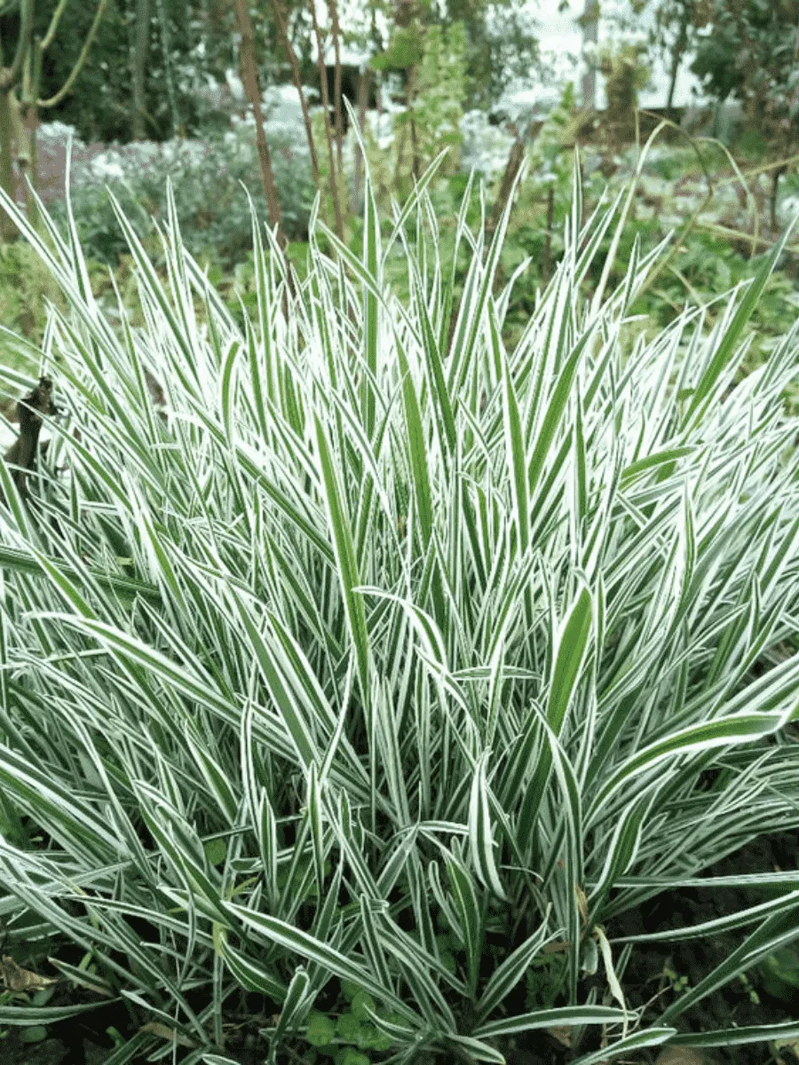 Райграс бульбоносный Variegatum — изысканное травянистое растение, покоряющее взор своей элегантностью и утончённостью форм. Его узколинейные листья, словно тонкие зелёные ленты, украшены серебристо-белыми продольными полосами, придающими растению особую декоративность и воздушную лёгкость. Стебли стройные, гибкие, устремлённые вверх, несут небольшие колоски нежной окраски, раскрывающиеся в период цветения мелкими белыми цветами, источающими едва уловимый аромат свежести. Корневище подземное, образует многочисленные клубеньки-луковички, благодаря которым растение легко размножается вегетативно, постепенно формируя живописные куртины. Предпочитает солнечные места, хорошо переносит засуху и неприхотливо к почвенным условиям, становясь украшением садов и парков, где создаёт атмосферу спокойствия и гармонии природы.