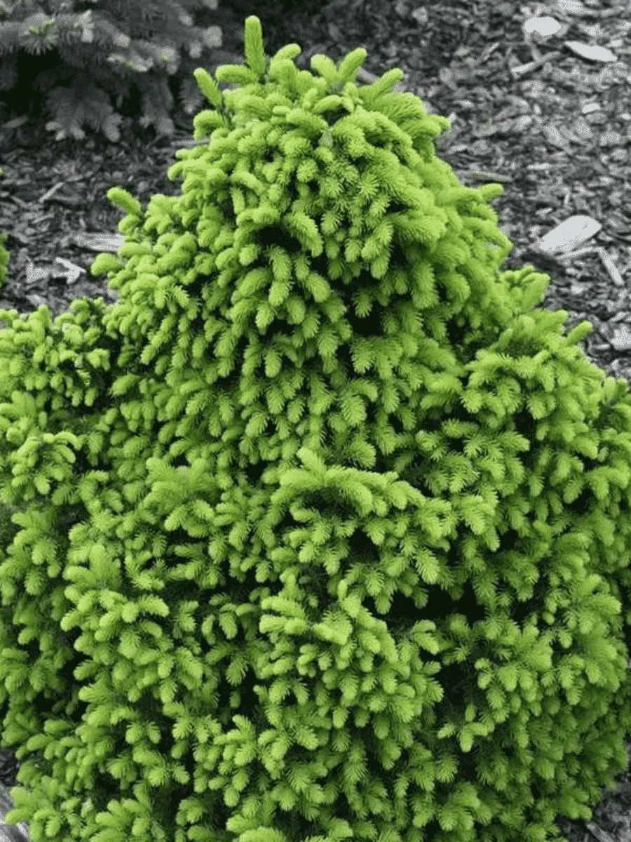 Ель обыкновенная сорта **Barryi** представляет собой компактную карликовую разновидность вечнозелёной хвойной красавицы, покоряющую сердца садоводов своей изысканной декоративностью и благородством облика. Её густые ветви образуют аккуратную пирамидальную крону, устремлённую вверх подобно миниатюрному зелёному шпилю. Игловидные листья отличаются насыщенным тёмно-зелёным цветом с серебристым отливом, придающим растению особую элегантность и утончённость. Хвоя короткая, плотная, слегка загнутая внутрь, словно нежные бархатные кисточки, украшающие каждую веточку. Растёт медленно, ежегодно прибавляя всего несколько сантиметров, достигая зрелости лишь через десятилетия. Цветение практически незаметно, поскольку шишки появляются редко и малозаметны среди густой хвои. Этот сорт предпочитает полутень и влажные почвы, прекрасно адаптируясь даже в суровых климатических условиях средней полосы России, где становится украшением каменистых садиков, альпинариев и небольших декоративных композиций.