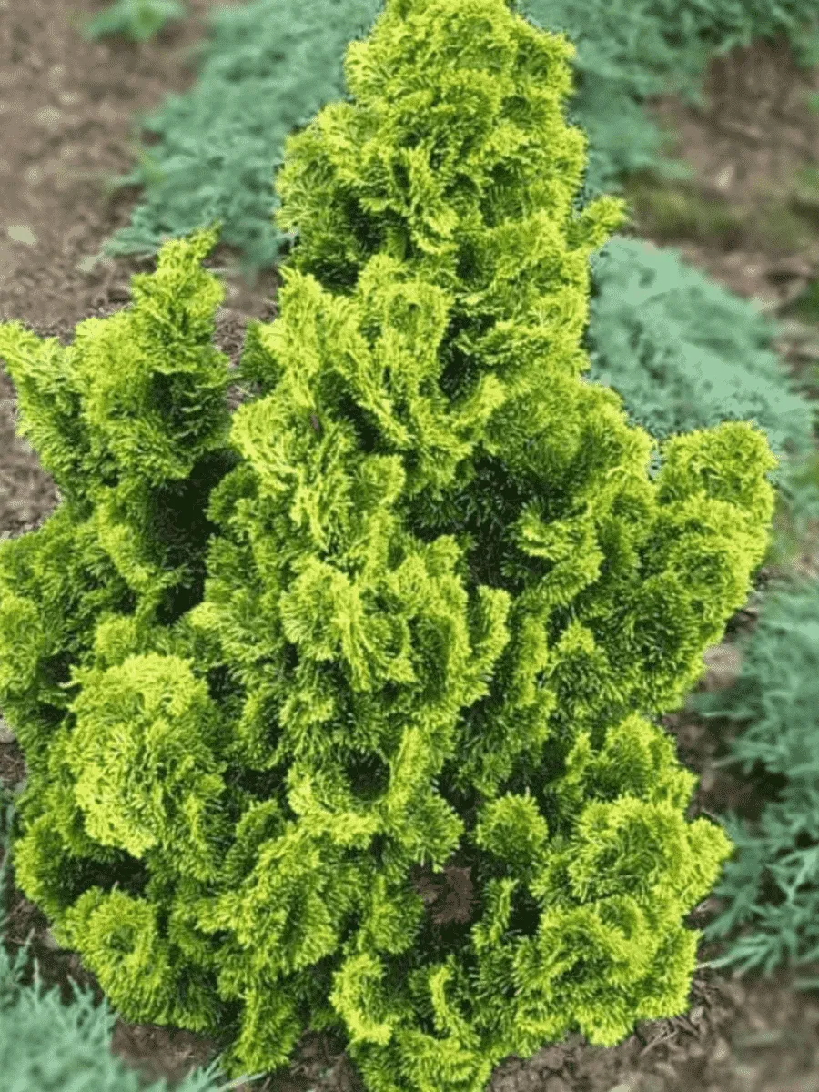 Кипарисовик туполистный 'Aurora' представляет собой стройную пирамидальную хвойную красавицу высотой до трёх метров с нежной светло-зелёной хвоей, переливающейся золотистыми оттенками весной и летом. Его мягкие иголки слегка округлые на концах, расположены густо и аккуратно, создавая впечатление пушистого облачка. Растёт медленно, ежегодно прибавляя лишь около десяти сантиметров, предпочитая солнечные места и плодородные почвы умеренного климата. Осенью крона приобретает лёгкий бронзовый оттенок, подчёркивая благородство облика дерева. Цветения у кипарисовика нет, однако декоративность кроны сохраняется круглый год благодаря мягкой структуре ветвей и приятному аромату свежей зелени. Этот сорт идеально подходит для одиночных посадок, небольших групповых композиций и живых изгородей, привнося элегантность и утончённость в любой садовый пейзаж.