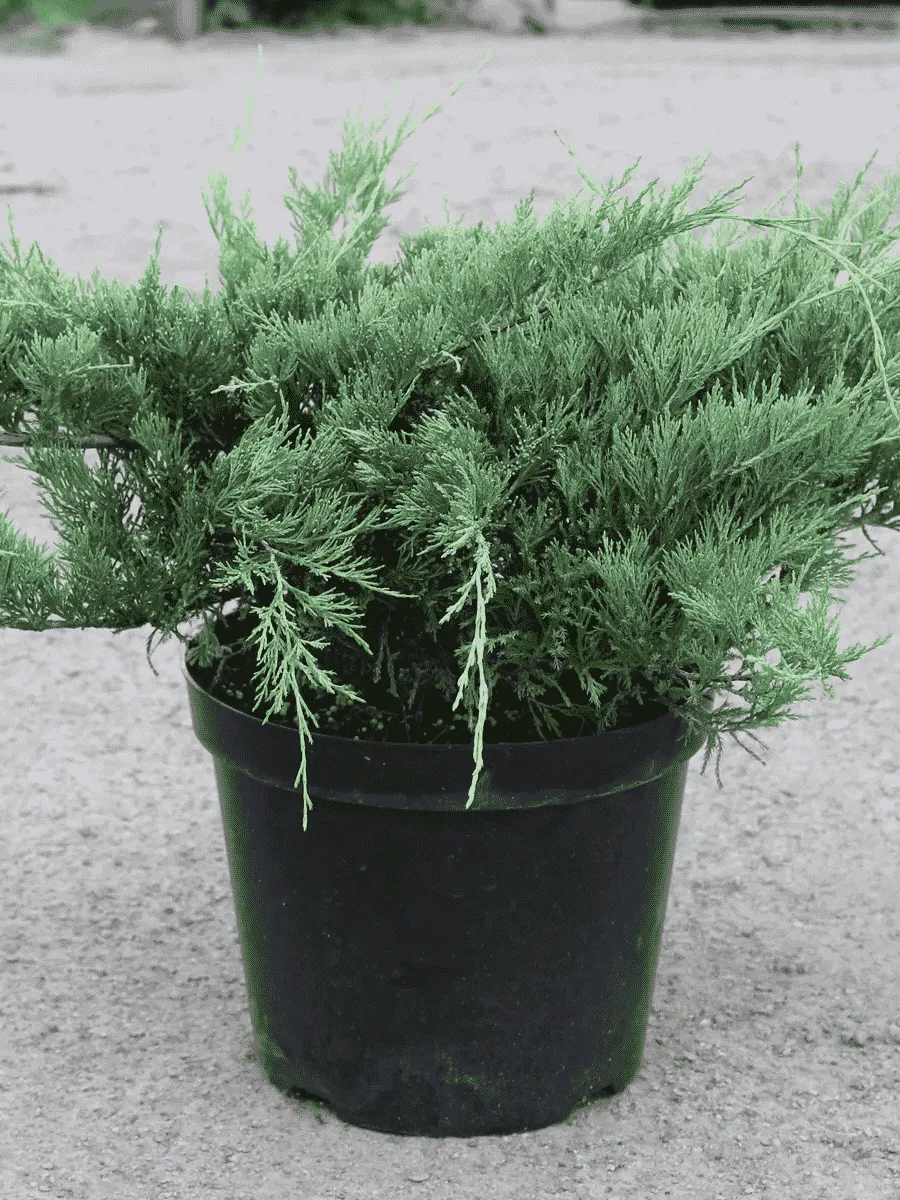Можжевельник горизонтальный Hughes — вечнозелёный кустарник благородной красоты, покоряющий сердца садоводов своей изысканной формой и нежностью оттенков. Его ветви стелются низко над землёй, словно живописная живопись природы, создавая эффектную зелёную мозаику. Листья мелкие, игловидные, густо покрывают побеги, переливаясь серебристым оттенком, который особенно заметен зимой, когда солнце играет лучами на покрытых снегом ветвях. Цветёт растение скромно, почти незаметно, раскрывая крошечные шишкоцветки весной, однако истинную прелесть можжевельника составляет именно его декоративность круглый год. Растёт медленно, предпочитая солнечные места и лёгкую почву, легко адаптируясь даже к суровым условиям климата средней полосы России. Этот элегантный представитель хвойных создаёт атмосферу спокойствия и гармонии, украшая собой сады, парки и альпийские горки, даря ощущение близости к природе и её первозданной красоте.