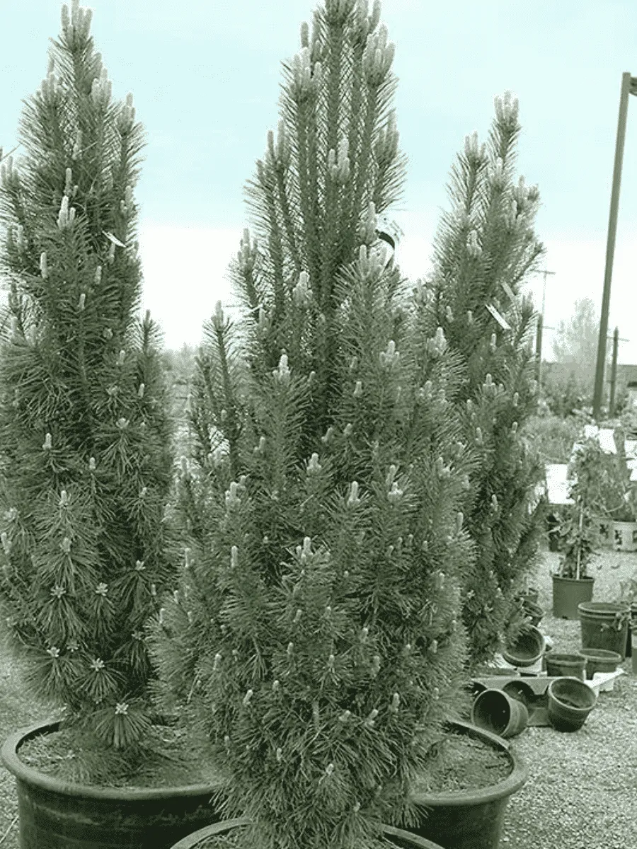 Сосна чёрная сорта *Komet* представляет собой стройную пирамидальную красавицу, достигающую высоты до пяти метров и обладающую густой плотной кроной, словно сотканной из тёмно-зелёных игл, блестящих и слегка искрящихся на солнце. Её ветви расположены горизонтально, создавая впечатление аккуратности и благородства, а короткие хвоинки длиной около двух сантиметров образуют густые пучки, придающие дереву особую декоративность даже зимой. Растёт медленно, ежегодно прибавляя всего несколько десятков сантиметров, предпочитая солнечные места и плодородные почвы, однако легко адаптируется к различным условиям среды благодаря своей выносливости и устойчивости к неблагоприятным факторам окружающей среды. Цветение сосны происходит весной, когда среди зелёных ветвей появляются небольшие шишечки, постепенно превращающиеся в зрелые коричневые шишки, украшающие дерево и подчёркивающие его природную красоту. Этот сорт идеально подходит для одиночных посадок, живых изгородей и ландшафтных композиций, привнося в сад атмосферу гармонии и величия природы.