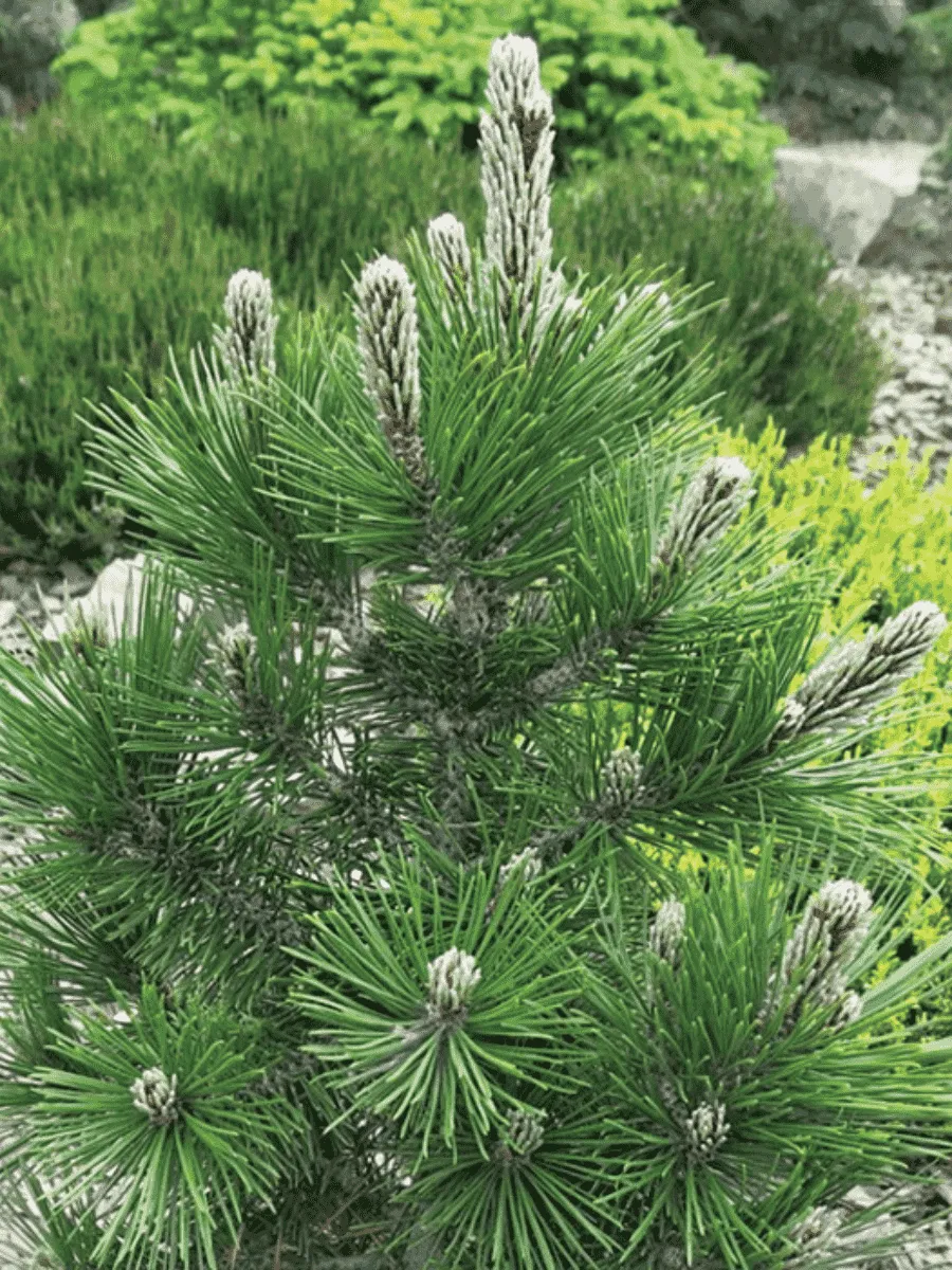 Сосна Гельдрейха сорта *Dolce dorme* представляет собой миниатюрную карликовую сосну с густой пирамидальной кроной, достигающей высоты всего около метра. Её ветви расположены горизонтально, слегка свисают книзу, придавая деревцу элегантность и утончённость. Иглы короткие, тёмно-зелёные, густо покрывающие побеги, создают впечатление мягкого бархата, переливающегося на солнце глубокими оттенками изумруда. Растёт медленно, ежегодно прибавляя лишь несколько сантиметров, сохраняя компактную форму даже в зрелом возрасте. Цветение практически незаметно, поскольку шишки появляются редко и остаются небольшими, почти скрытыми среди пышной хвои. Предпочитает солнечные места, хорошо переносит засуху и морозоустойчива до минус тридцати градусов Цельсия. Благодаря своей декоративности широко используется в ландшафтном дизайне альпийских горок, рокариев и японских садов, где её сдержанная красота подчёркивает гармонию природы и создаёт атмосферу спокойствия и умиротворённости.