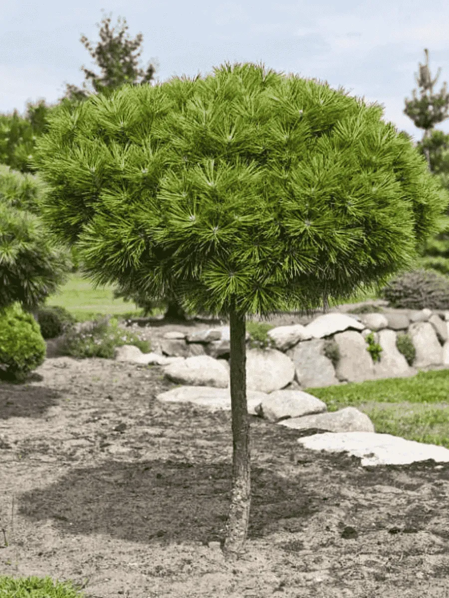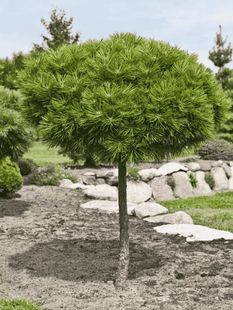 Сосна горная сорта *Mops* представляет собой компактную декоративную разновидность хвойного дерева, отличающуюся миниатюрностью форм и медленным ростом. Её густые ветви образуют плотную округлую крону, придающую растению сходство с пушистым шариком. Иглы сосны короткие, мягкие, насыщенно-зелёного цвета, слегка блестящие, собранные в пучки по две штуки, придают кроне особую мягкость и воздушность. Цветёт растение невзрачно, формируя небольшие шишечки, едва заметные среди густой хвои. Благодаря своей неприхотливости и устойчивости к неблагоприятным условиям среды, сосна горная *Mops* широко используется в ландшафтном дизайне, украшая сады, парки и альпийские горки своим элегантным внешним видом и способностью сохранять привлекательность круглый год.