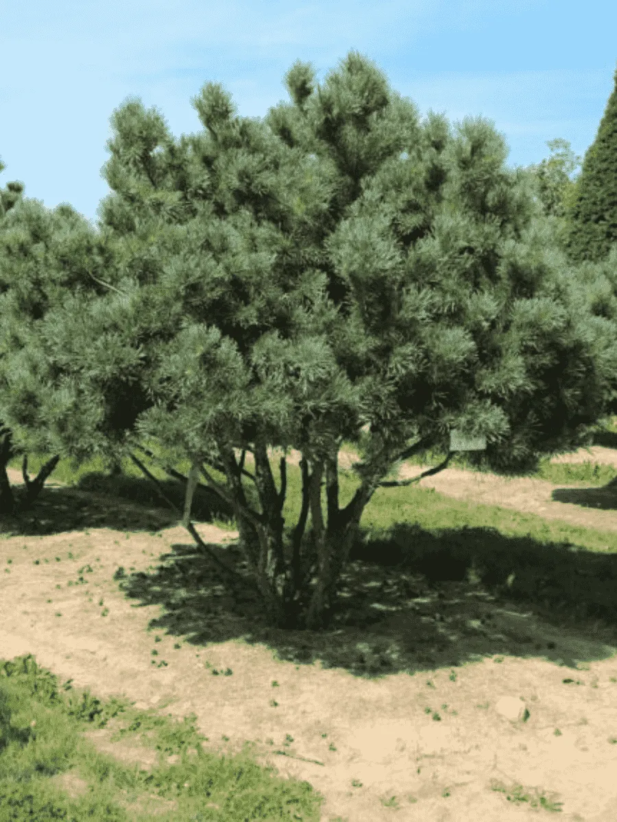 Сосна обыкновенная сорта **Watereri** представляет собой живописную карликовую разновидность сосны, отличающуюся компактностью форм и медленным ростом. Её густые ветви образуют плотную округлую крону, придающую деревцу благородство и величавость даже в миниатюрных размерах. Иглы короткие (около 5 см), тёмно-зелёные, собраны в пучки по две штуки, создавая эффект мягкого бархата, покрывающего всю поверхность кроны. Весной молодые побеги окрашиваются в нежный золотисто-жёлтый оттенок, который постепенно сменяется насыщенным зелёным цветом зрелых игл. Цветёт растение мелкими шишечками, едва заметными среди густой хвои, однако основное внимание привлекает именно декоративная форма дерева, идеально подходящая для оформления садов и парков, где оно служит ярким акцентом благодаря своей элегантности и сдержанной красоте.