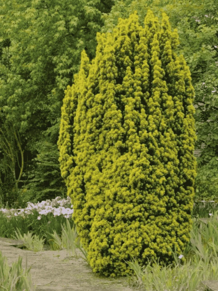Тис ягодный 'David' представляет собой медленно растущее вечнозелёное дерево или кустарник с густой пирамидальной кроной, достигающей высоты до трёх метров. Его ветви раскидистые, гибкие, покрыты плотной тёмной корой, придающей дереву благородную строгость и величественность. Листья узколанцетные, кожистые, блестящие, насыщенно-зелёные сверху и слегка серебристые снизу, расположены спирально вдоль ветвей, создавая эффект густого бархата. Цветёт растение незаметно мелкими зелёноватыми цветами, скрытыми среди листвы, однако истинная красота проявляется осенью, когда женские экземпляры украшаются яркими красными шишкоягодами, словно драгоценными бусинами, контрастирующими с тёмной зеленью хвои. Растение теневыносливое, морозостойкое, предпочитает плодородные влажные почвы, широко используется в ландшафтном дизайне благодаря своей декоративности и способности сохранять привлекательность круглый год.