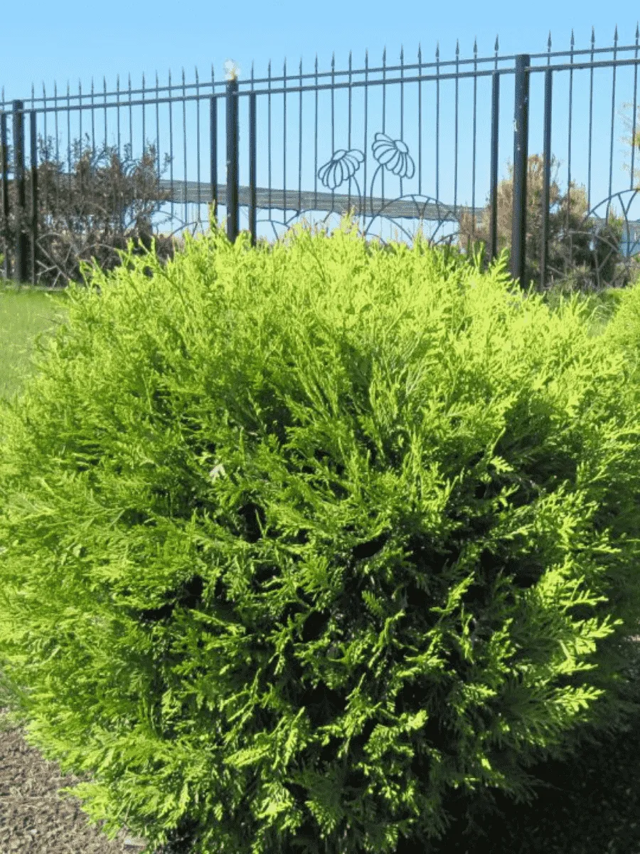 Туя западная сорта *Globosa* представляет собой компактную шаровидную крону изумрудной окраски, достигающую высоты до двух метров и ширины около полутора метров. Её густые ветви покрыты мелкими чешуевидными листьями насыщенного зелёного цвета, сохраняющего свежесть даже зимой благодаря природному восковому покрытию. Растёт медленно, ежегодно прибавляя лишь несколько сантиметров, сохраняя свою аккуратную округлую форму без дополнительной обрезки. Цветение практически незаметно, поскольку мелкие невзрачные шишечки появляются редко и быстро исчезают среди густой хвои. Предпочитает солнечные места, однако легко переносит полутень, устойчива к городским условиям и загрязнению воздуха, широко используется в ландшафтном дизайне парков и садов России благодаря своей декоративности и неприхотливости.