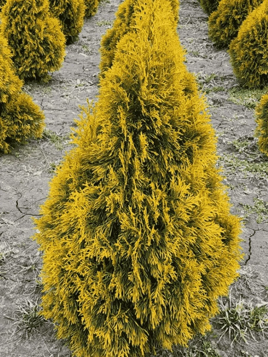 Туя западная 'Jantar' представляет собой компактную пирамидальную крону, украшенную густой хвоей золотисто-медового оттенка, который особенно ярко проявляется весной и осенью, создавая эффект переливающегося янтаря на солнце. Хвоя мелкая, чешуйчатая, плотно прилегающая к ветвям, придаёт растению благородный декоративный облик. Растёт медленно, ежегодно прибавляя всего несколько сантиметров, достигая зрелого возраста высоты около двух метров и ширины до одного метра. Цветение практически незаметно, поскольку шишки мелкие и невзрачные, уступающие своей красотой роскошной кроне. Предпочитает солнечные места, хорошо переносит полутень, устойчива к городским условиям и зимним холодам средней полосы России. Идеально подходит для одиночных посадок, живых изгородей и композиций в ландшафтном дизайне благодаря своему элегантному внешнему виду и неприхотливости в уходе.