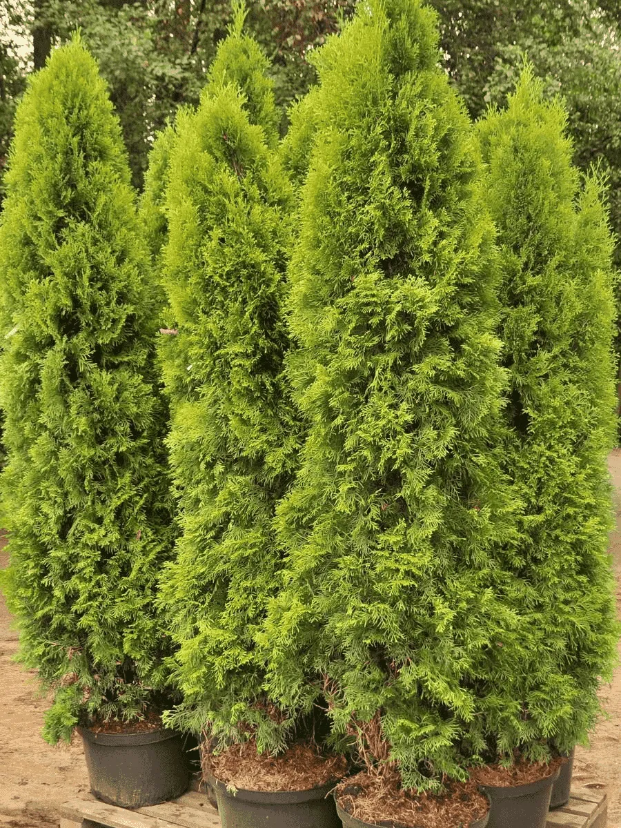 Туя западная 'Silver Smaragd' представляет собой стройную пирамидальную красавицу среди хвойных растений, достигающую высоты до трёх метров и обладающую плотной компактной кроной, словно выточенной искусным мастером. Её нежные чешуевидные листья образуют густое покрытие ветвей, создавая впечатление мягкого зелёного бархата, который весной украшается серебристым оттенком молодых приростов, придающим деревцу особую изысканность и благородство. Летом же хвоя приобретает насыщенный изумрудный оттенок, подчёркивая свежесть и жизненную силу растения. Цветёт эта миниатюрная лесная принцесса скромно, почти незаметно, радуя лишь тонким ароматом крошечных шишечек, едва заметных глазу. Растёт медленно, предпочитая солнечные места и плодородные почвы, легко адаптируясь даже к городским условиям, становясь украшением садов и парков, где её элегантность и утончённость неизменно привлекают восхищённые взгляды ценителей прекрасного.