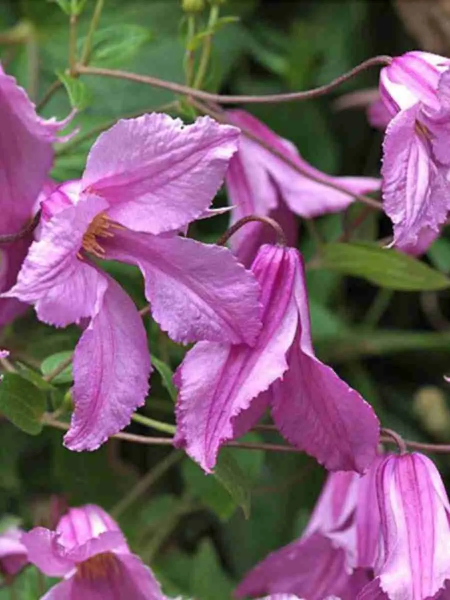 Клематис сорта *Allonushka* пленяет взор нежностью крупных цветков нежно-розового оттенка, украшенных тонкой пурпурной каймой по краям лепестков, словно лёгкий румянец утренней зари. Листья тёмно-зелёные, рассечённые на несколько овальных долей, придают растению элегантную ажурность и подчёркивают воздушность облика. Цветки распускаются обильно, создавая живописные каскады среди зелёной листвы, превращаясь в настоящее украшение сада. Этот сорт отличается компактностью и умеренным ростом, достигая высоты около полутора метров, благодаря чему идеально подходит для вертикального озеленения небольших садов и балконов. Период цветения продолжительный, начинается в июне и продолжается до конца лета, наполняя пространство чарующим ароматом и радуя глаз своей утончённой красотой.