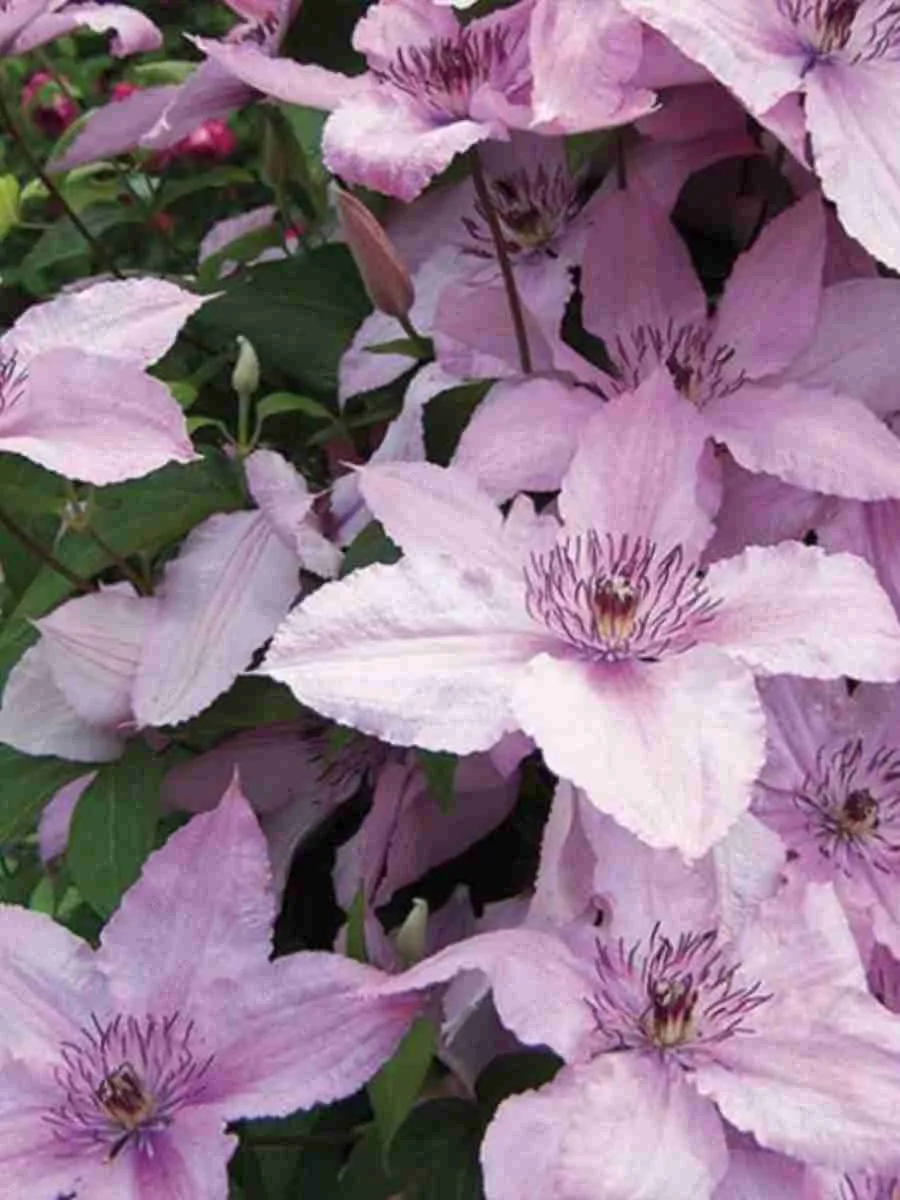 Клематис гибридный Hagley Hybrid очаровывает своей утончённой красотой и элегантностью форм. Это мощная лиана с гибкими побегами, достигающая высоты до трёх метров, украшенная крупными тёмно-зелёными листьями сложной формы, состоящими из нескольких овальных листочков с зубчатыми краями. Цветки крупные, диаметром около десяти сантиметров, распускаются обильно и продолжительно, начиная с июня и заканчивая сентябрём. Лепестков пять-шесть, широкие, слегка волнистые, нежно-розового оттенка с серебристым отливом, придающим цветкам особую воздушность и лёгкость. Сердцевина цветка подчёркнута контрастной жёлтой серединкой, привлекающей внимание насекомых-опылителей. Растёт быстро, легко адаптируется к различным условиям, предпочитая солнечные места и плодородную почву, широко используется в вертикальном озеленении садов и парков, создавая живописные композиции и радуя глаз нежнейшими оттенками своего цветения.
