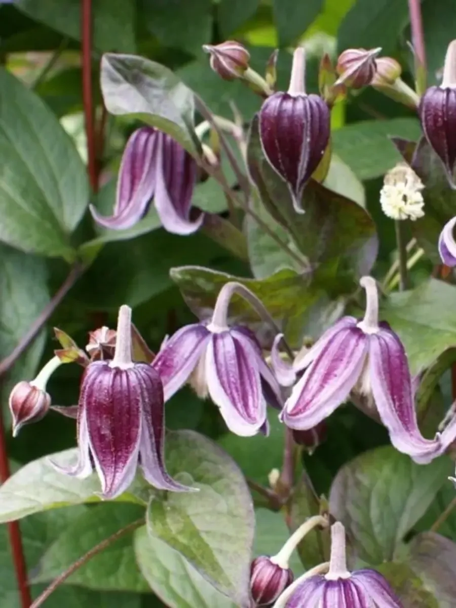 Клематис сорта *Jan Fopma* пленяет взор роскошной зеленью лианоподобных стеблей, густо покрытых крупными сердцевидными листьями насыщенного изумрудного оттенка, слегка гофрированными по краям и украшенными нежным блеском воскового покрытия. Цветки распускаются щедро и обильно, поражают своей величиной и элегантностью формы: крупные чашевидные бутоны раскрываются широкими лепестками глубокого винно-красного цвета с едва заметным пурпурным отливом, контрастируя с золотистыми тычинками, собранными в аккуратную центральную кисточку. Период цветения продолжительный, начинается ранней весной и длится до поздней осени, наполняя сад изысканным ароматом и живописным очарованием. Растение отличается стремительным ростом, легко взбирается вверх по шпалерам и решёткам, создавая пышные зелёные каскады, идеально подходящие для вертикального озеленения садов и парков.