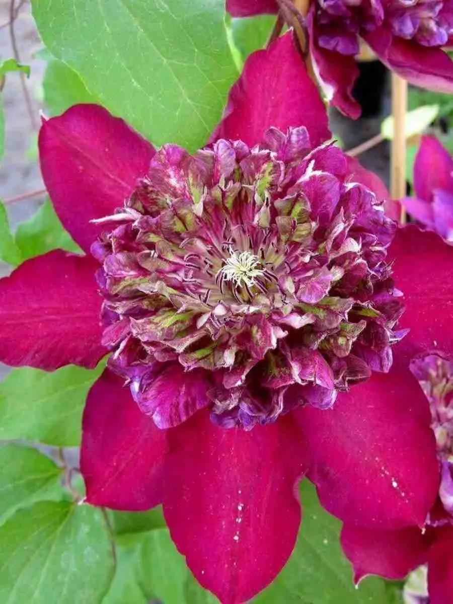 Клематис сорта *Temptation* пленяет взор роскошью крупных цветков насыщенного пурпурного оттенка, украшенных бархатистым отливом и нежной светлой каймой по краям лепестков, словно окутанных утренней дымкой. Листья растения имеют сложную перистую структуру, состоящую из нескольких овальных листочков с зубчатым краем, придающих облику куста особую воздушность и лёгкость. Цветки распускаются обильно, покрывая собой всю поверхность лианы, создавая впечатление пышного букета, парящего над садовыми дорожками. Стебли гибкие, цепляющиеся усиками, позволяют растению легко взбираться вверх, обвивая опоры и превращаясь в живописную живую ширму. Этот сорт предпочитает солнечные места, хорошо дренированные почвы и умеренный полив, радуя садоводов своим продолжительным цветением с июня до поздней осени.