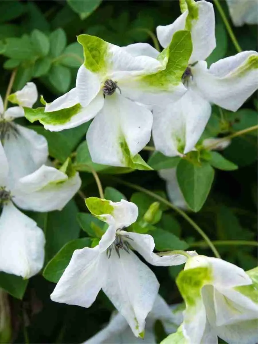 Клематис Витицелла *Alba Luxuriants* пленяет взор нежностью белоснежных цветков, словно сотканных из утренней дымки и прозрачных солнечных лучей. Его тонкие побеги устремляются вверх, легко обвивая опоры и создавая живописную зелёную завесу. Листья тёмно-зелёные, слегка блестящие, рассечены на несколько овальных долей, придающих растению изысканный декоративный облик даже вне периода цветения. Цветёт обильно и продолжительно, начиная с конца июня до середины сентября, покрываясь множеством крупных (до 15 см), широких звёздчатых цветов с четырьмя лепестками, нежно-белого цвета с едва заметной кремово-жёлтой сердцевиной. Растение предпочитает солнечные места, хорошо дренированные почвы и умеренный полив, быстро разрастается, достигая высоты около трёх метров, превращая садовые арки, перголы и стены домов в волшебные белые гроты, наполненные ароматом свежести и лёгкости.