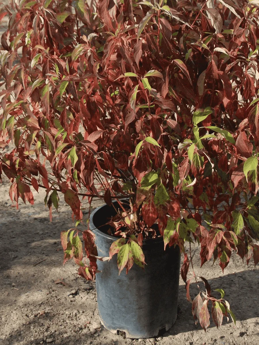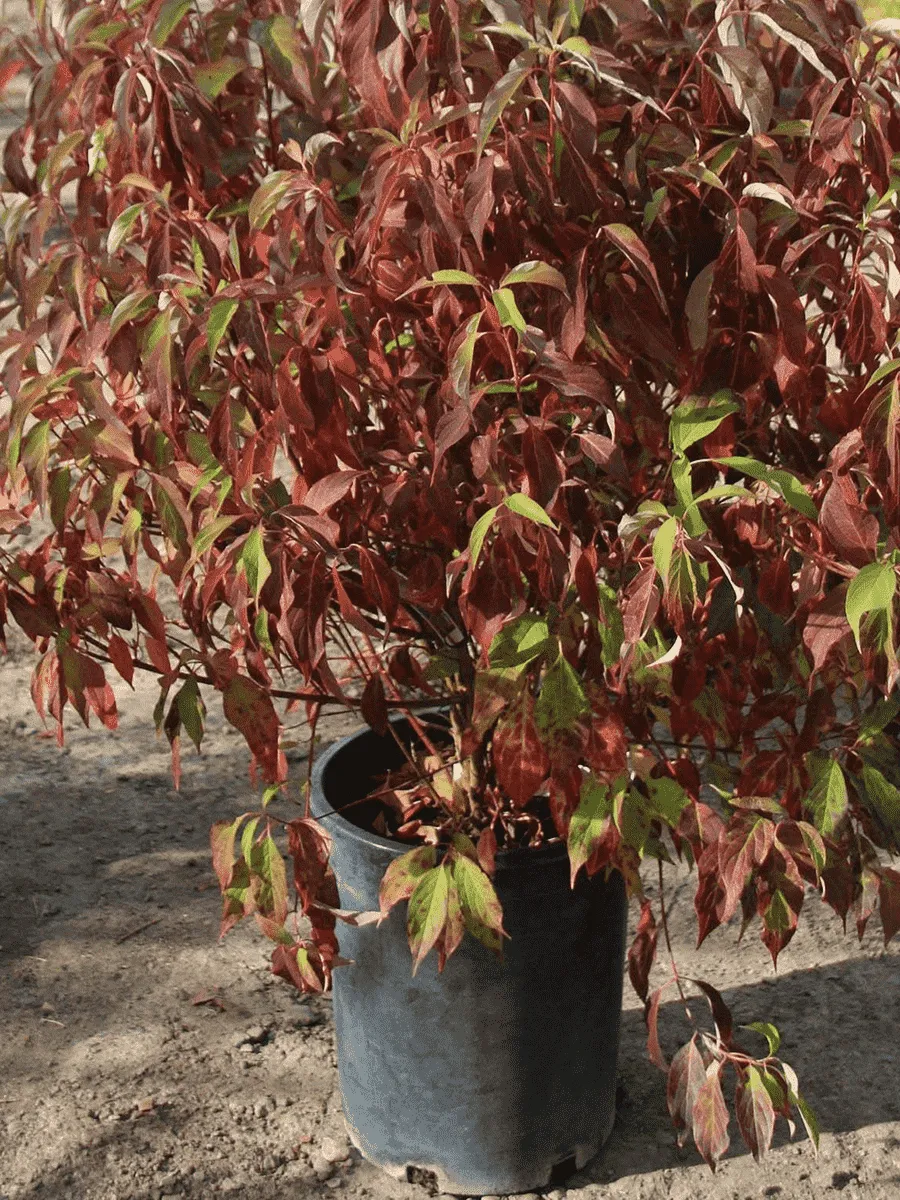 Дерен Red Gnome — компактный кустарник высотой до одного метра, обладающий густой кроной и эффектной декоративностью. Его листья насыщенно-зелёные летом приобретают осенью яркие оттенки красного цвета, создавая живописную палитру осеннего сада. Цветки мелкие, белые, собраны в зонтичные соцветия, появляются весной и привлекают внимание нежностью своего облика. Кустарник отличается медленным ростом, устойчивостью к морозу и неприхотливостью в уходе, прекрасно вписываясь в ландшафтные композиции благодаря своей миниатюрности и красоте листвы. Красивое растение для небольших садов и контейнерного озеленения, оно способно украсить любой уголок участка, привнося гармонию и элегантность своим присутствием.