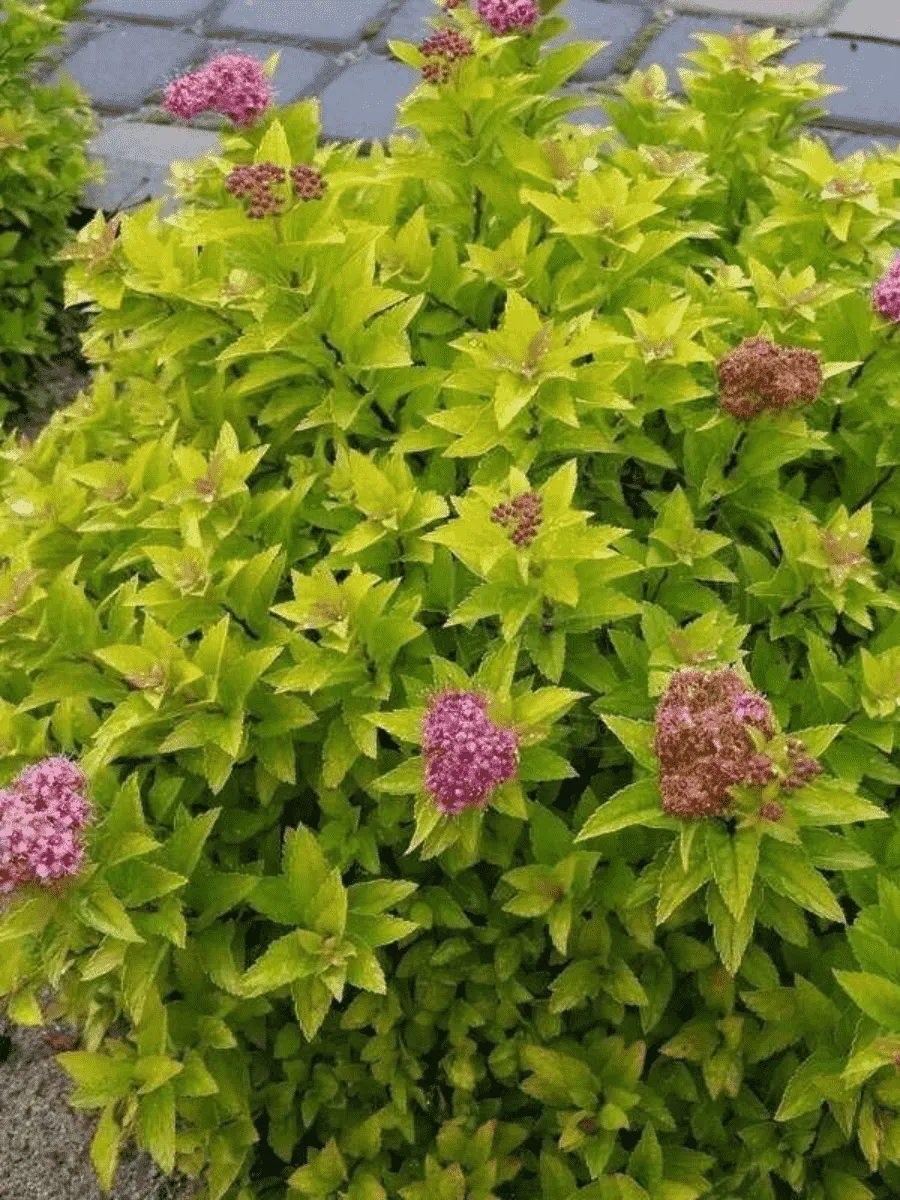 Спирея японская 'Golden Jack' представляет собой компактный кустарник высотой до одного метра с густой округлой кроной, состоящей из множества тонких прямостоячих ветвей. Листья мелкие, овально-ланцетной формы, ярко-золотисто-жёлтые весной и летом, осенью приобретающие насыщенные оранжево-красноватые оттенки, создавая живописную игру красок. Цветки собраны в плоские щитковидные соцветия диаметром около пяти сантиметров, окрашены нежнейшими розово-пурпурными оттенками, обильно покрывают куст во второй половине лета, придавая ему праздничный облик. Растёт медленно, предпочитает солнечные места и плодородные почвы, устойчива к городским условиям, зимостойка и неприхотлива в уходе, широко используется в ландшафтном дизайне благодаря своей декоративности и длительному периоду цветения.