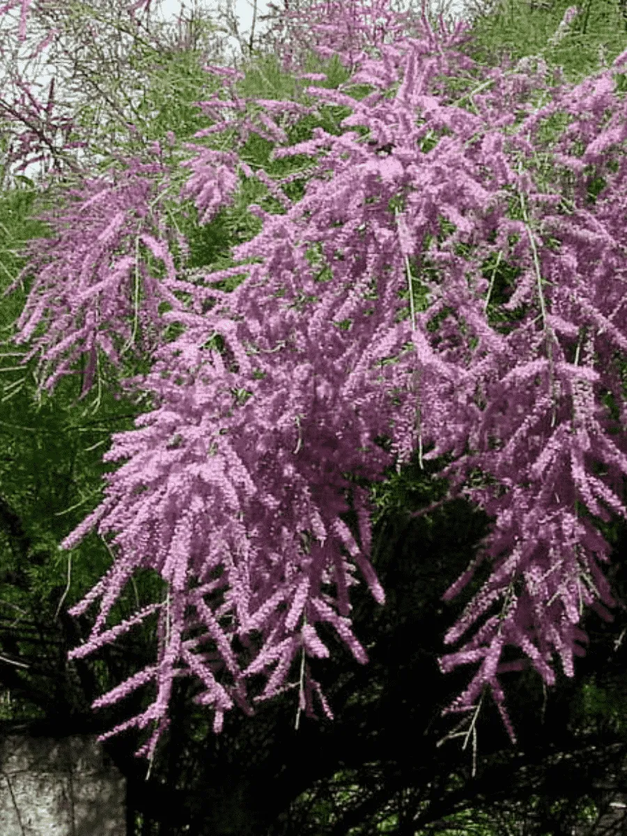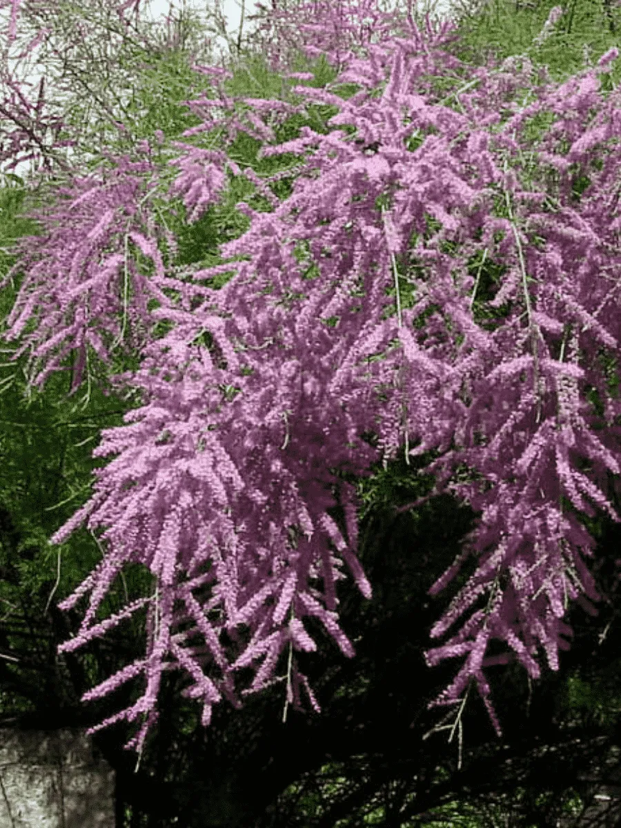Тамарикс ветвистый (Tamarix ramosissima), известный также как гребенщик, представляет собой стройную кустарниковую породу с тонкими извилистыми ветвями, покрытыми мелкими чешуевидными листьями серебристо-зелёной окраски, придающей растению лёгкий дымчатый оттенок. Его ветви устремляются вверх, создавая ажурную крону, словно кружево, сотканное природой. Цветёт тамарикс обильно и продолжительно, покрываясь множеством мелких розовых цветков, собранных в длинные кисти, украшая ландшафт нежностью и воздушностью. Растение предпочитает сухие песчаные почвы, солончаки и берега водоёмов, демонстрируя удивительную устойчивость к засухе и соли. Благодаря своей неприхотливости и декоративности оно широко используется в озеленении пустынных зон и прибрежных территорий, где создаёт живописные пейзажи, смягчённые шелестом тонких ветвей и ароматом цветов.