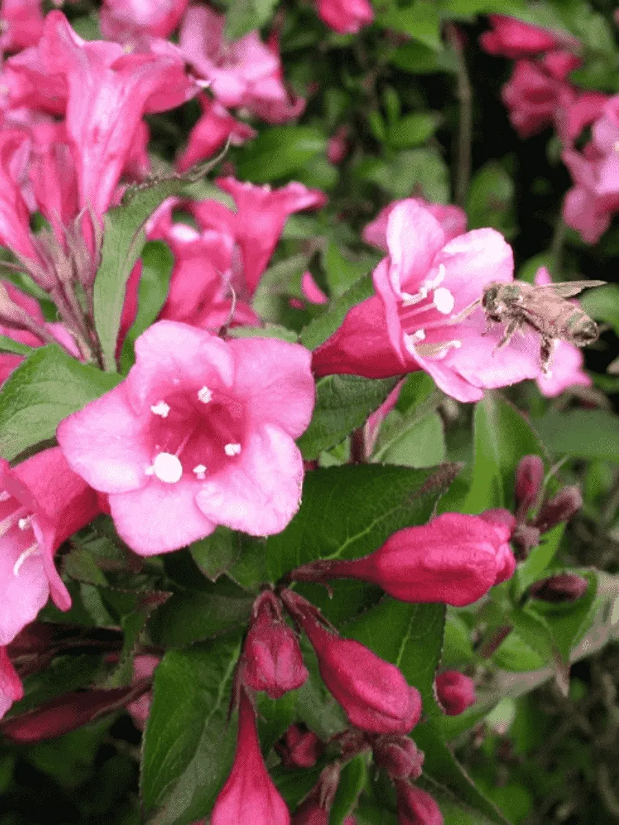 Вейгела цветущая сорта Минует (Weigela florida 'Minuet') представляет собой компактный кустарник высотой до одного метра с густой округлой кроной, состоящей из множества тонких гибких ветвей, покрытых мелкими овальными листьями насыщенного зелёного цвета с лёгким блеском, придающим растению особую свежесть и привлекательность. Цветёт обильно и продолжительно, начиная с конца мая и вплоть до середины июля, покрываясь множеством небольших колокольчатых цветков нежно-розового оттенка с пурпурным отливом внутри, собранных в небольшие соцветия, украшающие каждую ветвь словно миниатюрные драгоценности. Растение предпочитает солнечные места, хорошо переносит обрезку и стрижку, легко адаптируется к различным типам почв, устойчиво к городским условиям и зимостойко даже в суровых климатических зонах средней полосы России. Благодаря своей декоративности и неприхотливости Вейгела Минует широко используется в ландшафтном дизайне для оформления садов, парков и придомовых территорий, создавая живописную картину весеннего цветения и радуя глаз нежной палитрой оттенков.