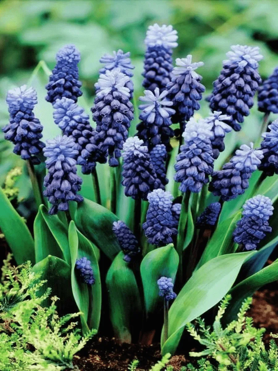 Мускари латифолиум — очаровательное луковичное растение семейства спаржевых, покоряющее сердца садоводов нежностью весеннего цветения и элегантной простотой облика. Листья широколанцетные, насыщенно-зелёные, гладко блестящие, словно покрытые тонким слоем воска, образуют компактную розетку высотой до 15 см, подчёркивая стройность стебля. Цветонос прямой, крепкий, устремлённый вверх, несёт кисть мелких колокольчатых цветков глубокого синего цвета, переливающихся оттенками от небесно-голубого до тёмно-фиолетового. Бутоны раскрываются постепенно снизу вверх, создавая эффект волны, плавно движущейся вдоль соцветия. Период цветения приходится на апрель-май, когда природа ещё только просыпается после зимней спячки. Растение предпочитает солнечные места с плодородной почвой, легко размножается дочерними луковицами и семенами, быстро формируя живописные группы, украшающие альпийские горки, рокарии и миксбордеры.