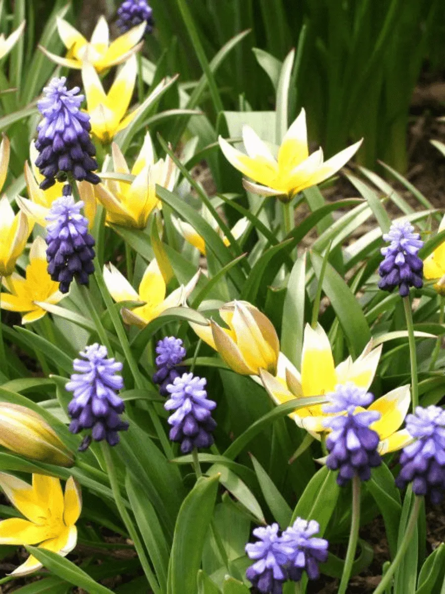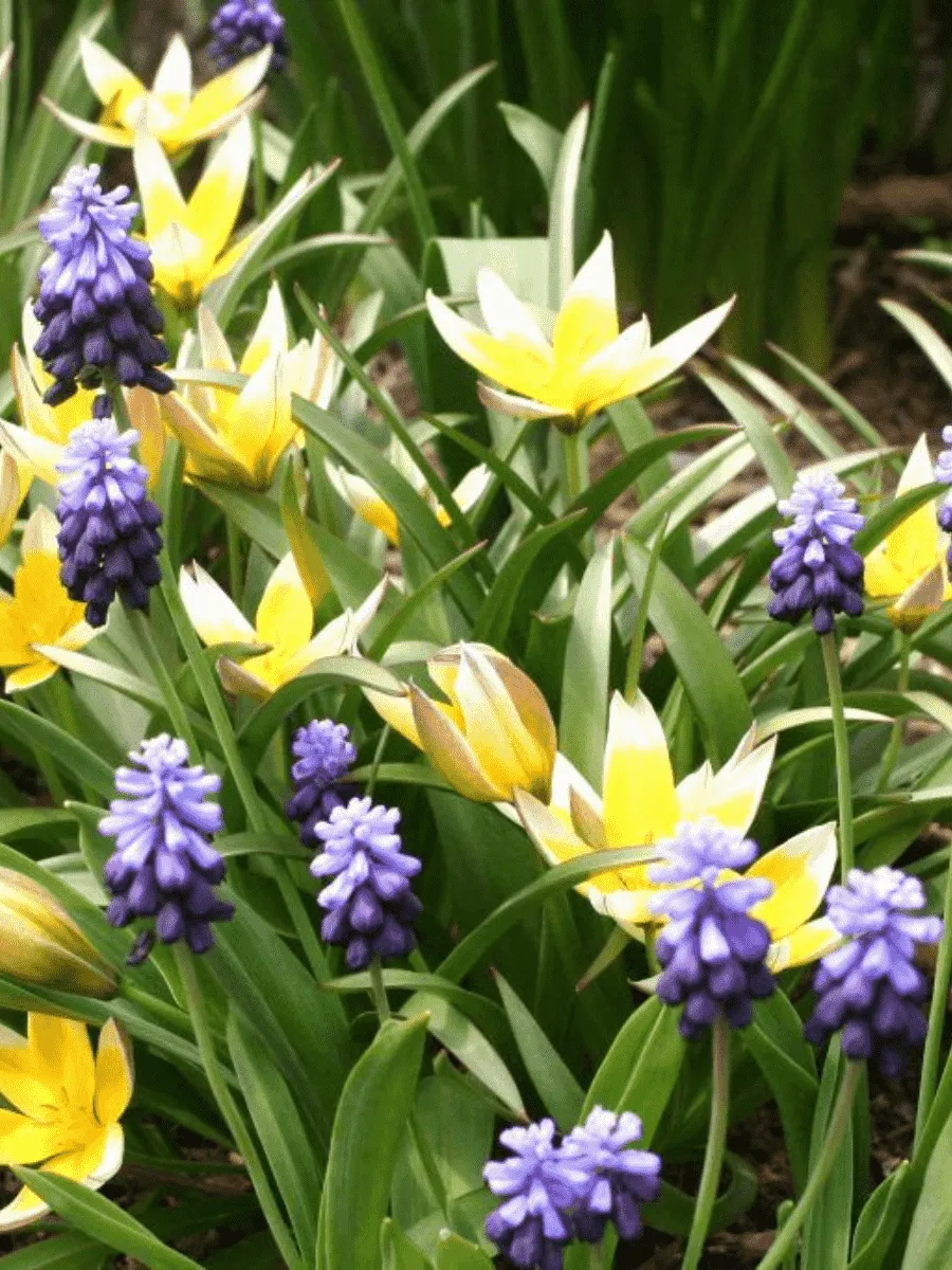 Набор луковиц мускари и тюльпана ботанического представляет собой изысканное сочетание двух благородных растений, воплощающих весеннюю свежесть и утончённую красоту природы. Мускари, известный также как мышиный гиацинт, очаровывает миниатюрностью своих соцветий, собранных в плотную кисть нежно-голубого цвета, словно крошечная гроздь драгоценных сапфиров. Его узкие линейные листья образуют аккуратный зелёный фон, подчёркивая нежность цветков. Рядом возвышается элегантный тюльпан ботанический, обладающий компактной формой цветка и разнообразием оттенков от кремово-белых до насыщенно-жёлтых и розовых тонов. Листья тюльпанов гладкие, блестящие, слегка волнистые по краям, создавая гармоничный контраст с воздушными соцветиями мускари. Оба растения предпочитают солнечные места и лёгкую плодородную почву, радуют глаз ранним цветением весной и прекрасно сочетаются друг с другом, дополняя общую композицию сада своей природной грацией и простотой.