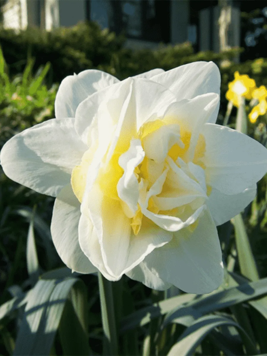 Нарцисс сорта *Calgary* пленяет взор своей утончённой красотой и благородством форм. Его длинные узколинейные листья насыщенного зелёного цвета образуют пышную розетку, подчёркивая стройность стебля высотой до тридцати сантиметров. Белоснежная чашечка цветка словно соткана из нежнейшего шёлка, её края слегка волнистые, придающие особую воздушность облику. Изящные лепестки венчика окружают золотистую коронку, сияющую мягким солнечным светом. Цветение нарцисса начинается ранней весной, когда природа ещё робко просыпается от зимнего сна, наполняя воздух тонким ароматом свежести и чистоты. Растёт этот сорт преимущественно на солнечных участках, предпочитая плодородные почвы умеренных широт Европы и Азии, где способен создавать живописные группы и великолепные композиции в садах и парках.