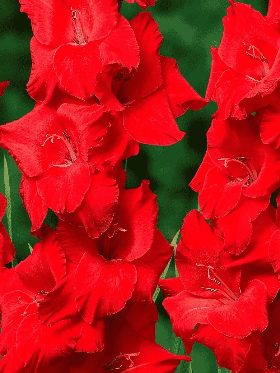 Гладиолус Fire Frizzles очаровывает своей изысканной красотой и благородством форм. Высокий стройный стебель достигает метра высоты, увенчанный роскошной кистью крупных цветков, словно пламенные языки огня, трепещущие на ветру. Листья узколинейные, длинные и острые, насыщенного зелёного цвета, придают растению особую элегантность и строгость линий. Цветки раскрываются постепенно снизу вверх, демонстрируя всю палитру оттенков от золотисто-оранжевого до ярко-красного с лёгким розовым оттенком, создавая впечатление живого танца огненных искр среди зелени сада. Этот гладиолус предпочитает солнечные места и плодородную почву, радуя садоводов своим пышным цветением с июля по сентябрь. Его великолепие особенно эффектно проявляется в групповых посадках или срезке для букетов, где он становится настоящим украшением любого интерьера.