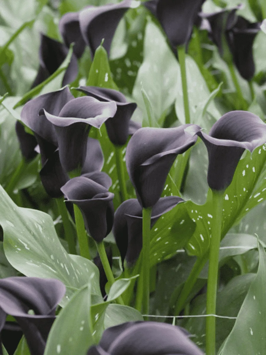 Калла Dubai Night — изысканное растение с благородной тёмно-фиолетово-чёрной окраской листвы, придающей ей таинственный шарм и элегантность. Листья крупные, сердцевидные, бархатистые на ощупь, словно покрытые тонким слоем драгоценного лака, контрастируют с белоснежными покрывалами цветков, подчёркивая природную гармонию светлого и тёмного. Цветки каллы представляют собой эффектные початки, окружённые крупными белыми покрывалами-лепестками, источающими тонкий аромат свежести и чистоты. Растение отличается компактностью и аккуратностью форм, прекрасно вписываясь в интерьеры и сады благодаря своей утончённой красоте и неприхотливости в уходе. Предпочитает умеренно влажные почвы и рассеянный солнечный свет, легко адаптируется к различным условиям выращивания, радуя глаз своим великолепием круглый год.