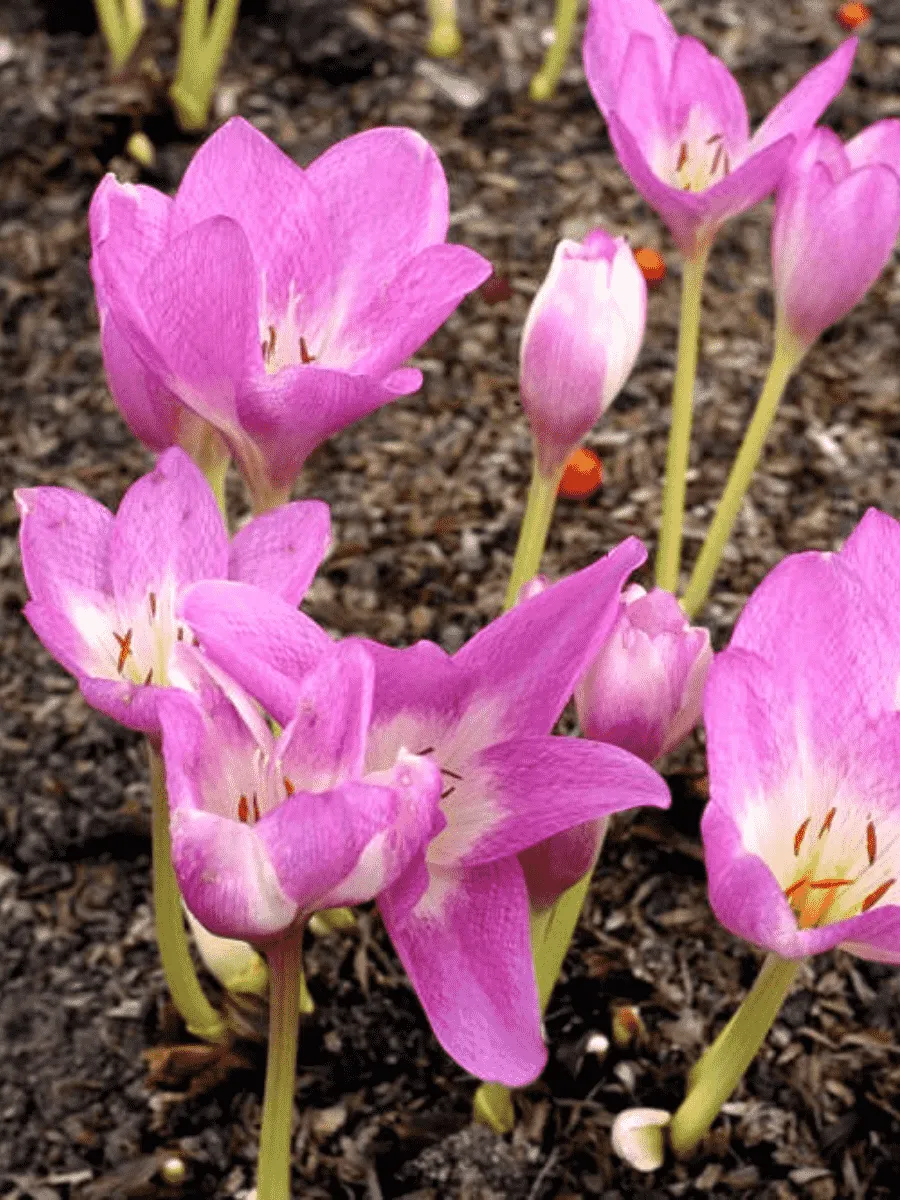 Колхикум сорта *Rosy Dawn* очаровывает нежностью своего цветения и утончённостью облика. Это многолетнее травянистое растение с крупными луковицами, укрытыми тёмно-коричневыми чешуями, словно драгоценная шкатулка, хранящая внутри тайну будущего великолепия. Листья появляются после цветения, широкие, продолговатые, насыщенно-зелёные, слегка блестящие, будто покрытые тонким слоем воскового блеска. Цветки возвышаются над землёй на стройных прочных стеблях высотой до полуметра, раскрываясь бутонами нежно-розовых оттенков, переходящих от светлого центра к чуть более глубоким тонам по краям лепестков. Лепестки крупные, округлые, бархатистые, источают едва уловимый аромат свежести и чистоты. Период цветения приходится на осень, когда природа уже готовится ко сну, а колхикум словно прощается с летом последним ярким аккордом своей красоты. Растёт медленно, предпочитает плодородную почву и умеренное увлажнение, распространяя свою изысканность небольшими группами среди садов и парков, где становится истинной жемчужиной осеннего пейзажа.