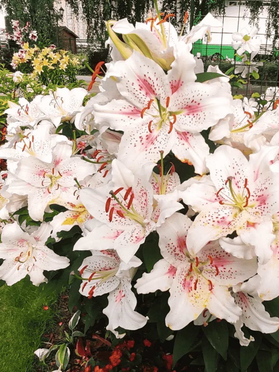 Лилия сорта *Muscadet* пленяет взор изысканным благородством форм и нежностью оттенков. Её стройные стебли достигают высоты до одного метра, увенчанные крупными ароматными цветами, раскрывающимися подобно драгоценным чашечкам. Лепестки нежно-кремовые, слегка отливающие золотистым блеском, украшены мелкими пурпурными пятнышками, придающими особую утончённость облику цветка. Листья ланцетовидные, гладкие, насыщенно-зелёного цвета, гармонично подчёркивающие красоту соцветий. Цветёт лилия обильно и продолжительно, начиная с середины лета и радуя глаз вплоть до первых осенних дней. Предпочитает солнечные участки с плодородной рыхлой почвой, легко адаптируется к различным климатическим условиям, демонстрируя стойкость и неприхотливость. Этот сорт идеально подходит для украшения садов и парков, создавая атмосферу элегантности и спокойствия.