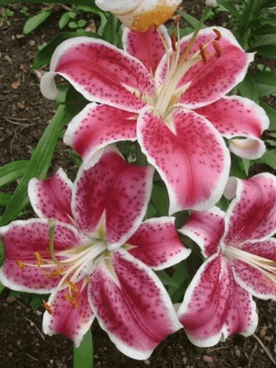 Лилия **Starfighter** пленяет взор своей изысканной красотой и благородством форм. Высокий стройный стебель достигает метра высоты, увенчанный крупными ароматными цветами, словно звездами сияющими среди зелени сада. Лепестки цветка окрашены в насыщенный красно-оранжевый оттенок с золотистыми переливами, украшенные тёмно-коричневыми пятнами, придающими особую декоративность. Листья ланцетовидные, гладкие, ярко-зелёные, расположены вдоль всего стебля, создавая гармоничную композицию с яркими бутонами. Цветёт лилия обильно и продолжительно, начиная с июля и заканчивая августом, наполняя пространство вокруг нежным ароматом и притягивая внимание своим великолепием. Предпочитает солнечные места с плодородной почвой, легко адаптируется к различным климатическим условиям, становясь украшением садов и парков, радуя глаз и вдохновляя художников и поэтов.