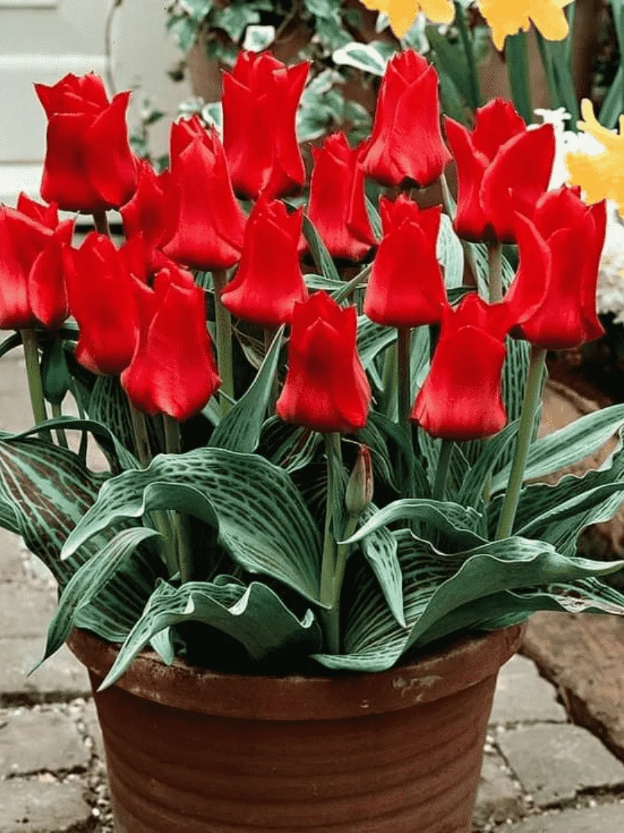 Тюльпан ботанический *Red Riding Hood* пленяет взор своей изысканной красотой и благородством форм. Его крепкий стебель высотой около сорока сантиметров увенчан крупным одиночным бутоном насыщенного рубинового оттенка, словно капля драгоценной крови, сверкающей на солнце. Листья удлинённые, гладкие, тёмно-зелёного цвета с лёгким восковым блеском, придающим растению особую элегантность и утончённость. Цветок распускается постепенно, раскрываясь навстречу солнечному свету, демонстрируя бархатистые лепестки идеальной формы, слегка загнутые назад, подчёркивая природную грацию цветка. Этот сорт тюльпана предпочитает солнечные участки с плодородной почвой, прекрасно чувствует себя в умеренном климате и широко используется в ландшафтном дизайне благодаря своему эффектному внешнему виду и длительному периоду цветения.
