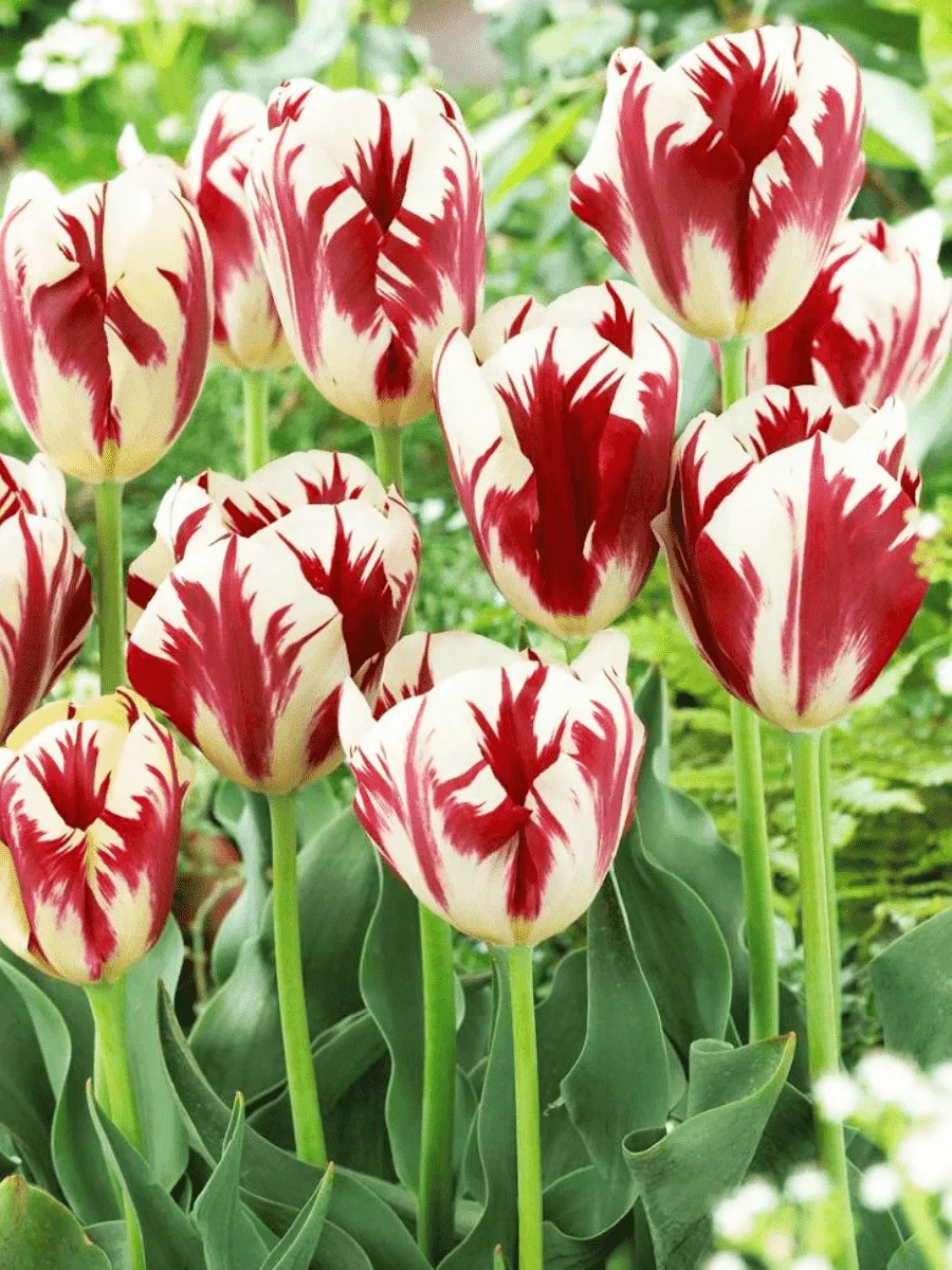 Тюльпан Grand Perfection — роскошная садовая культура, поражающая своей элегантностью и благородством форм. Листья крупные, тёмно-зелёные, гладкие, блестящие, слегка вытянутые, подчёркивающие стройность стебля высотой до полуметра. Цветки одиночные, чашевидные, широко раскрытые, достигают диаметра около десяти сантиметров, обладают идеальной симметрией лепестков, словно вырезанных искусной рукой мастера. Окраска цветков насыщенно-красная, глубокая, бархатисто-глянцевая, иногда с едва заметным золотистым отливом, придающим особую изысканность. Бутоны раскрываются постепенно, демонстрируя постепенное преображение от компактного бутона до великолепного цветка, который долго сохраняет свежесть и привлекательность. Этот тюльпан предпочитает солнечные места, хорошо дренированные почвы и умеренный полив, прекрасно размножается луковицами, ежегодно радуя садоводов своим пышным весенним цветением.