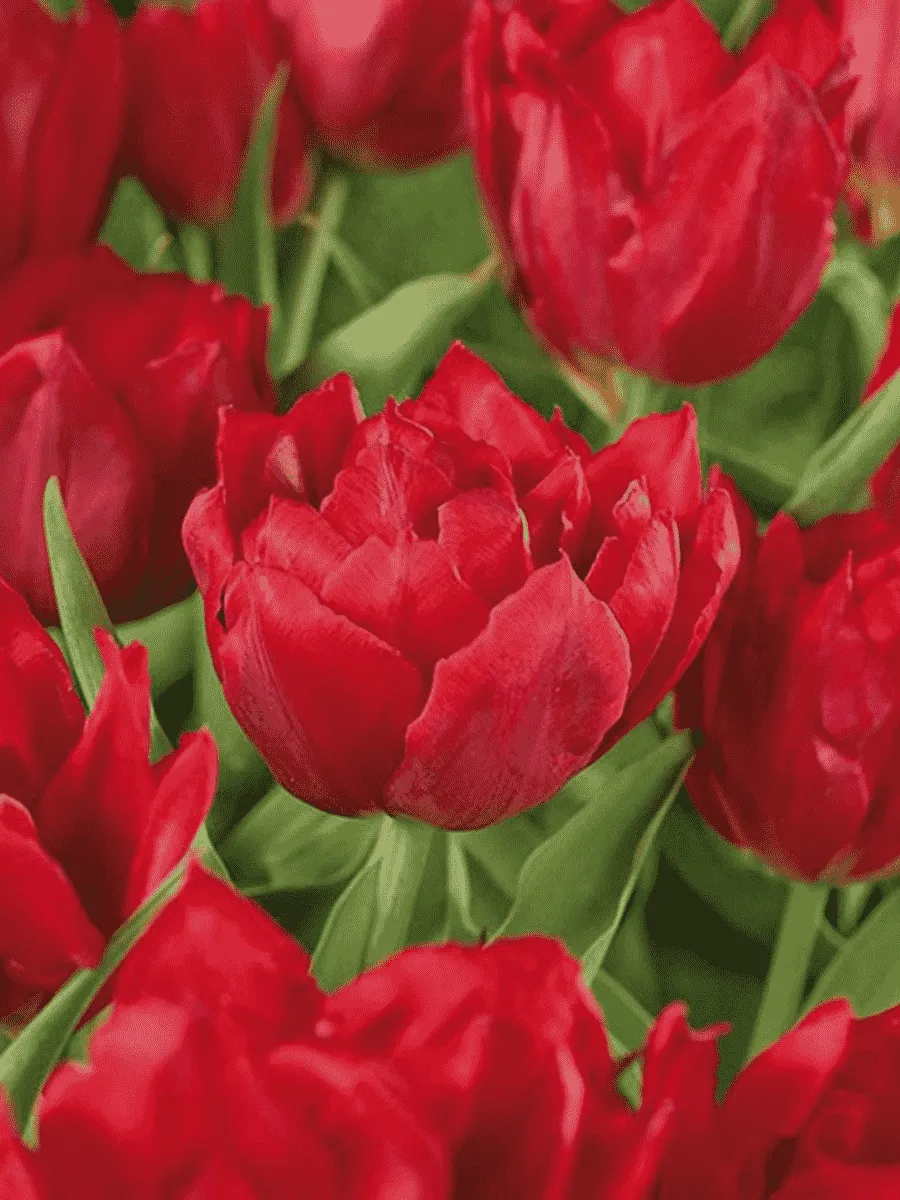 Тюльпан махровый 'Abba' пленяет взор роскошью своего цветения и утончённой красотой форм. Его крупные цветки достигают диаметра до 15 см, раскрываясь пышной чашей, состоящей из множества лепестков нежнейшего розово-кремового оттенка с едва уловимым золотистым отливом. Листья удлинённые, гладкие, насыщенно-зелёного цвета, подчёркивающие элегантность стебля высотой около полуметра. Цветёт растение обильно и продолжительно, начиная с конца апреля и радуя глаз вплоть до середины мая. Предпочитает солнечные участки с плодородной рыхлой почвой, легко адаптируется к различным климатическим условиям умеренной зоны, демонстрируя устойчивость к заморозкам и засухе. Этот тюльпан идеально подходит для украшения садов, парков и городских клумб, создавая атмосферу весеннего праздника и гармонии природы.