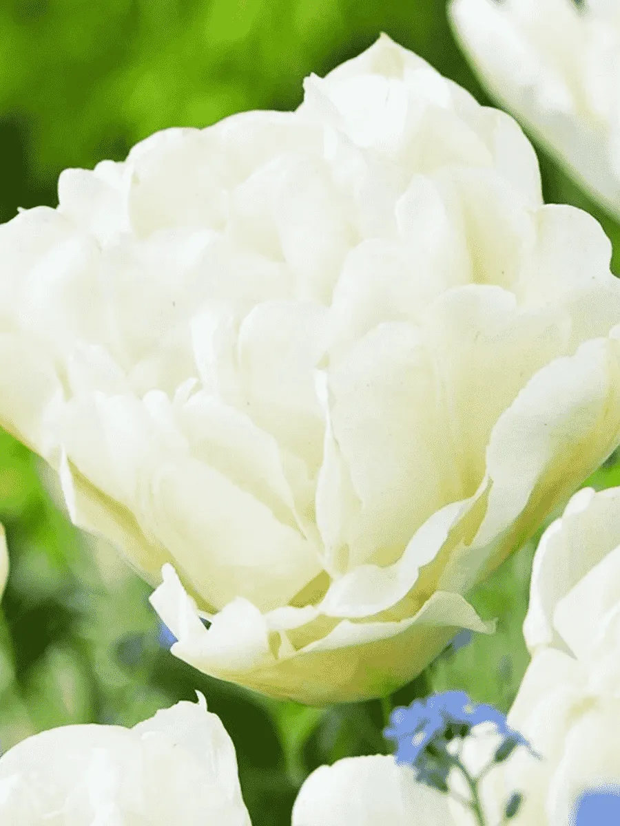 Тюльпан махровый *North Cape* пленяет взор роскошью своего цветения и утончённостью форм. Его крупные бутоны раскрываются пышными цветами насыщенного красного цвета с едва уловимым золотистым отливом, словно отражающим солнечные лучи. Лепестки густо собраны в плотную розетку, создавая впечатление бархатистого шара, который грациозно покачивается над стройной зелёной ножкой высотой около сорока сантиметров. Листья тюльпана тёмно-зелёные, гладкие и блестящие, слегка вытянутые и узколанцетные, подчёркивая элегантность цветка. Цветёт растение обильно и продолжительно, начиная с конца апреля до середины мая, радуя глаз своей красотой и свежим ароматом весны. Этот сорт предпочитает хорошо освещённые участки с плодородной почвой и умеренным поливом, легко адаптируясь к различным климатическим условиям средней полосы России.