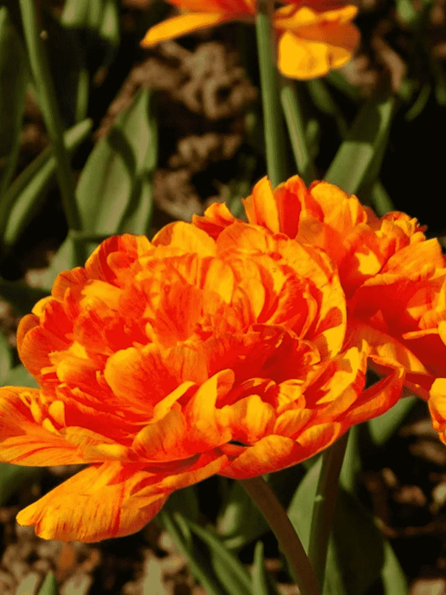 Тюльпан Monte Flame — изысканное растение семейства лилейных, покоряющее сердца садоводов своей утончённой красотой и элегантностью форм. Листья тёмно-зелёные, блестящие, слегка вытянутые, подчёркивающие стройность стебля высотой до полуметра. Цветки крупные, чашевидные, раскрываются навстречу солнечным лучам, демонстрируя роскошную палитру оттенков от золотисто-жёлтого до насыщенно-оранжевого с яркими алыми штрихами, словно пламя костра, танцующее на ветру. Бутоны появляются ранней весной, когда природа ещё только просыпается после зимней спячки, радуя глаз нежной свежестью и ароматом весны. Растёт тюльпан Monte Flame преимущественно в садах и парках умеренного климата, предпочитая солнечные участки с плодородной почвой, где способен раскрыть всю свою природную красоту и стать истинным украшением любого ландшафта.