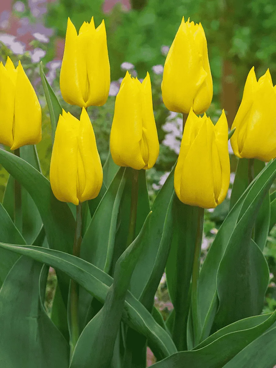 Тюльпан Йокогама (Tulipa 'Yokohama') пленяет взор своей изысканной красотой и элегантностью форм. Это многолетнее луковичное растение достигает высоты около 45–60 см, обладая крепким прямостоячим стеблем и узкими ремневидными листьями насыщенного зелёного цвета с лёгким восковым блеском. Цветки крупные, чашевидные, ярко-жёлтые, словно солнечные лучи, сияют среди зелени весной, раскрываясь навстречу солнечным лучам. Лепестки гладкие, слегка волнистые по краям, придают цветкам особую воздушность и утончённость. Растение предпочитает хорошо дренированные плодородные почвы и солнечные места, прекрасно адаптируется к умеренному климату средней полосы России, украшая сады и парки яркими красками ранней весны.