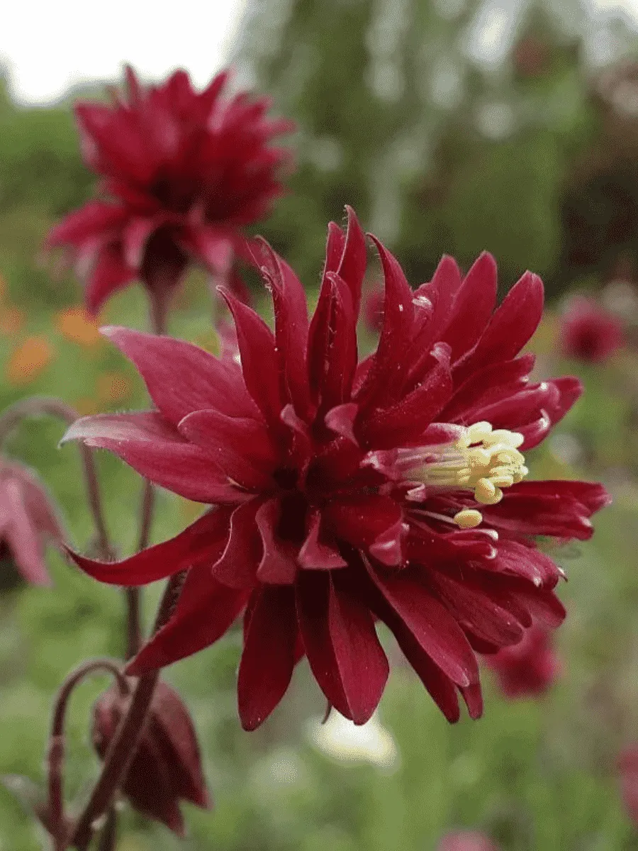 Аквилегия обыкновенная сорта Барлоу Бордо (Aquilegia vulgaris 'Barlow Bordeaux') пленяет взор изысканным сочетанием благородной формы и утончённой окраски. Её ажурные листья, рассечённые на узкие сегменты, словно кружево, создают лёгкую воздушную зелень, оттеняя роскошь цветков. Цветки бархатисто-тёмно-бордового цвета, крупные и элегантные, венчают стройные стебли высотой около полуметра, возвышаясь над листвой подобно миниатюрным фонарикам. Лепестки слегка загнуты назад, открывая взору длинные шпорцы, придающие растению особую декоративность. Этот сорт предпочитает полутень и умеренно влажные почвы, прекрасно размножается самосевом, создавая живописные островки среди тенистых уголков сада. Его цветение начинается в конце весны и продолжается до середины лета, наполняя пространство чарующим ароматом и притягивая внимание своей аристократической красотой.