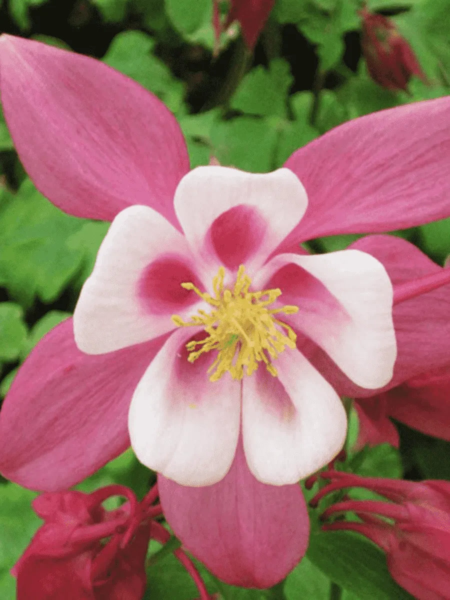Аквилегия вееровидная сорта *Spring Magic Rose And White* пленяет взор нежностью своего облика и изысканностью форм. Это компактное травянистое растение высотой около 45–60 см отличается ажурными рассечёнными листьями насыщенного зелёного цвета, придающими кусту воздушность и лёгкость. Цветки крупные, диаметром до 8 см, располагаются на длинных прочных стеблях, возвышаясь над листвой подобно элегантным фонарикам. Лепестки окрашены в очаровательные оттенки розового и белого цветов, плавно переходящие друг в друга, создавая впечатление мягкого рассвета. Особенностью цветков являются длинные шпорцы, направленные вверх, словно миниатюрные рожки, добавляющие растению очарования и уникальности. Период цветения длится с конца весны до начала лета, украшая садовые композиции яркими красками и утончённой красотой. Предпочитает полутень и плодородную влажную почву, легко размножается семенами и делением куста, быстро адаптируясь к новым условиям произрастания.