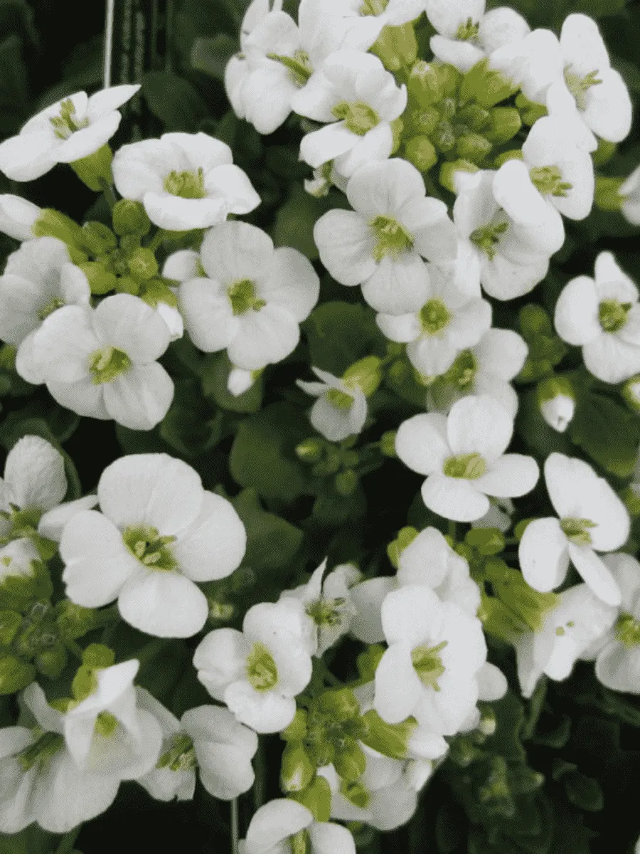 Арабис кавказский сорта *Little Treasure Deep White* представляет собой компактный вечнозелёный кустарничек высотой до 15–20 см с плотными розетками мелких кожистых листочков насыщенно-зелёной окраски, слегка волнистых по краям и покрытых нежным серебристым пушком. Цветёт обильно и продолжительно, начиная с конца апреля и вплоть до июня, покрываясь множеством небольших белоснежных цветков диаметром около 1,5 см, собранных в рыхлые кистевидные соцветия. Нежная ароматная шапка цветов словно окутывает растение воздушным облаком чистоты и свежести. Предпочитает солнечные места и плодородную дренированную почву, легко переносит засуху и морозы, благодаря чему широко используется в альпинариях, рокариях и миксбордерах, создавая живописные композиции среди камней и декоративных трав.