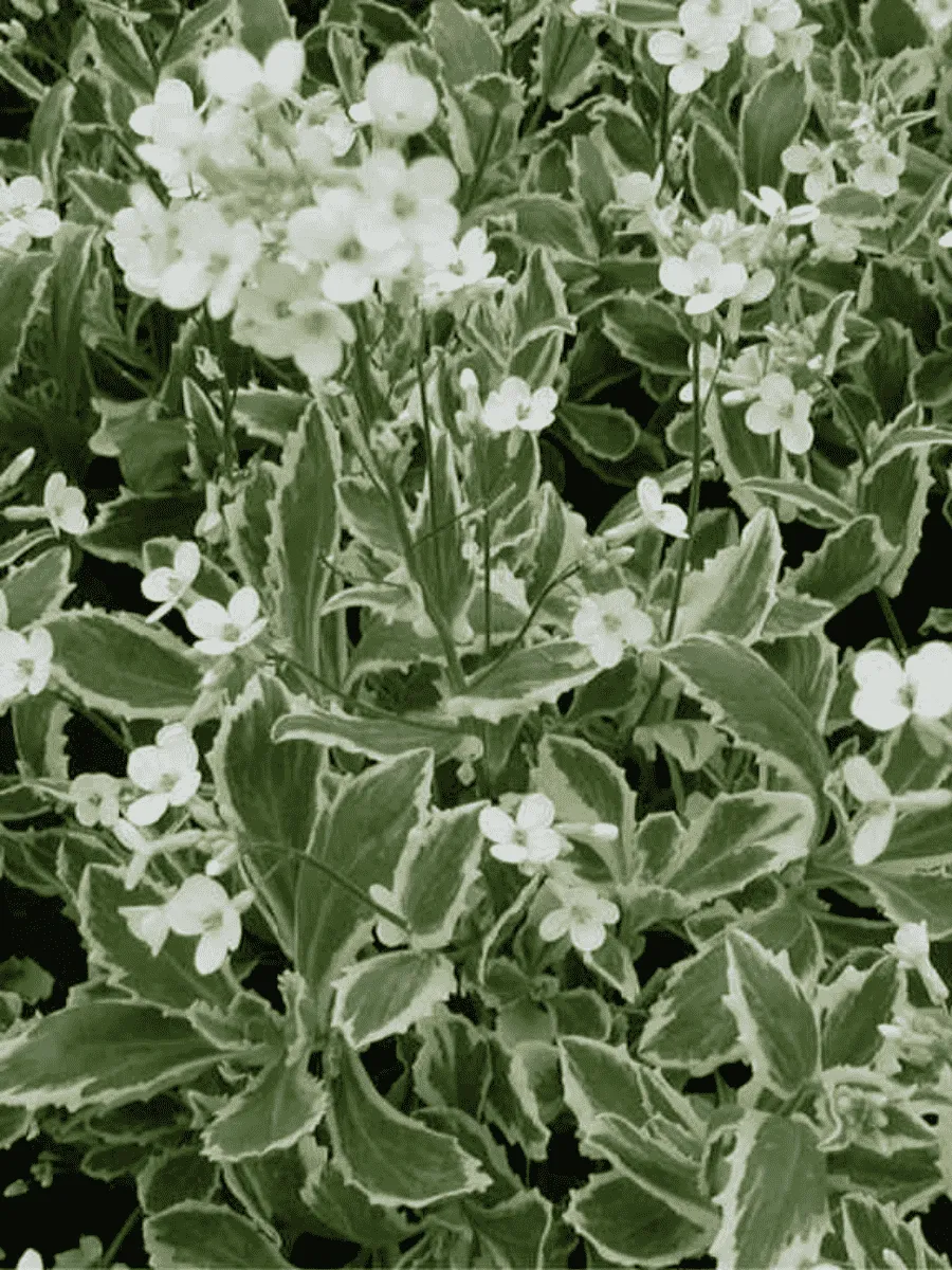 Арабис кавказский Variegata — изысканное растение семейства крестоцветных, покоряющее сердца садоводов своей нежной красотой и элегантностью форм. Это компактный многолетник высотой до 15–20 см, обладающий плотным кустиком с многочисленными побегами, покрытыми мелкими серебристо-зелёными листьями, украшенными белоснежными полосками и пятнами, придающими растению особую декоративность даже вне периода цветения. Листья имеют слегка волнистую поверхность и приятную бархатистость, создавая впечатление мягкого кружева среди зелёного ковра сада. Цветёт арабис обильно и продолжительно, покрываясь множеством мелких белых цветков, собранных в рыхлые кисти, источающих тонкий аромат весны. Растение предпочитает солнечные места, хорошо дренированные почвы и легко переносит засуху благодаря мощному корневищу. Благодаря своему неприхотливому характеру и привлекательности оно широко используется в альпинариях, рокариях и миксбордерах, где становится настоящим украшением каменистых участков и бордюров.