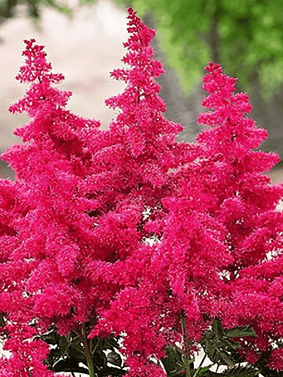 Астильба Арендса сорта *Big Bang* представляет собой эффектное травянистое растение с мощной корневой системой и компактным кустистым ростом высотой до полуметра. Листья крупные, тёмно-зелёные, рассечённые на узколанцетные сегменты, придающие растению благородную декоративность даже вне периода цветения. Цветоносы устремляются вверх стройными свечами, покрытыми пушистыми метёлками соцветий насыщенного розово-красного оттенка, источающими тонкий аромат и привлекательными для насекомых-опылителей. Период цветения продолжительный, начинается в середине лета и длится около месяца, украшая сад нежностью и пышностью своего облика. Предпочитает полутень и влажные плодородные почвы, прекрасно чувствует себя вблизи водоёмов и тенистых уголков сада, где её бархатистые цветы создают атмосферу изысканной утончённости и гармонии природы.