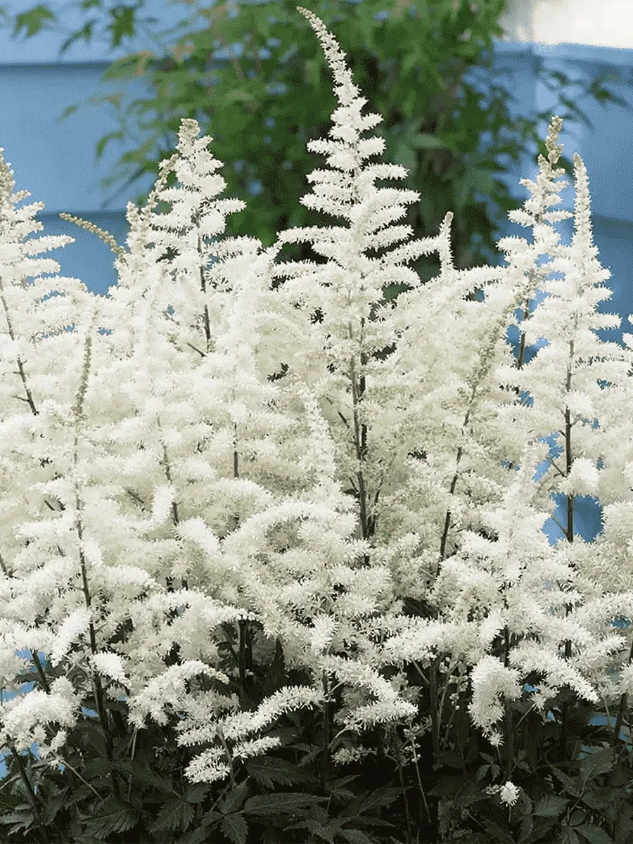 Астильба гибридная сорта *Cappuccino* пленяет взор изысканным сочетанием благородной зелени и нежнейшего цветения. Её листья перисто-рассечённые, тёмно-зелёные, слегка блестящие, образуют пышную розетку, словно живописный зелёный фонтан, струящийся каскадами от основания стебля до кончиков тонких листочков. Цветоносы устремляются вверх стройными свечами высотой около полуметра, увенчанные густыми метельчатыми соцветиями цвета молочного шоколада с оттенком карамельного кофе, источающими тонкий аромат свежести и прохлады. Бутоны раскрываются постепенно, создавая эффект непрерывности цветения, которое длится несколько недель, наполняя сад очарованием и элегантностью. Растёт астильба медленно, предпочитая полутень и влажные почвы, формируя компактные кустики, идеально подходящие для тенистых уголков сада, рокариев и миксбордеров.