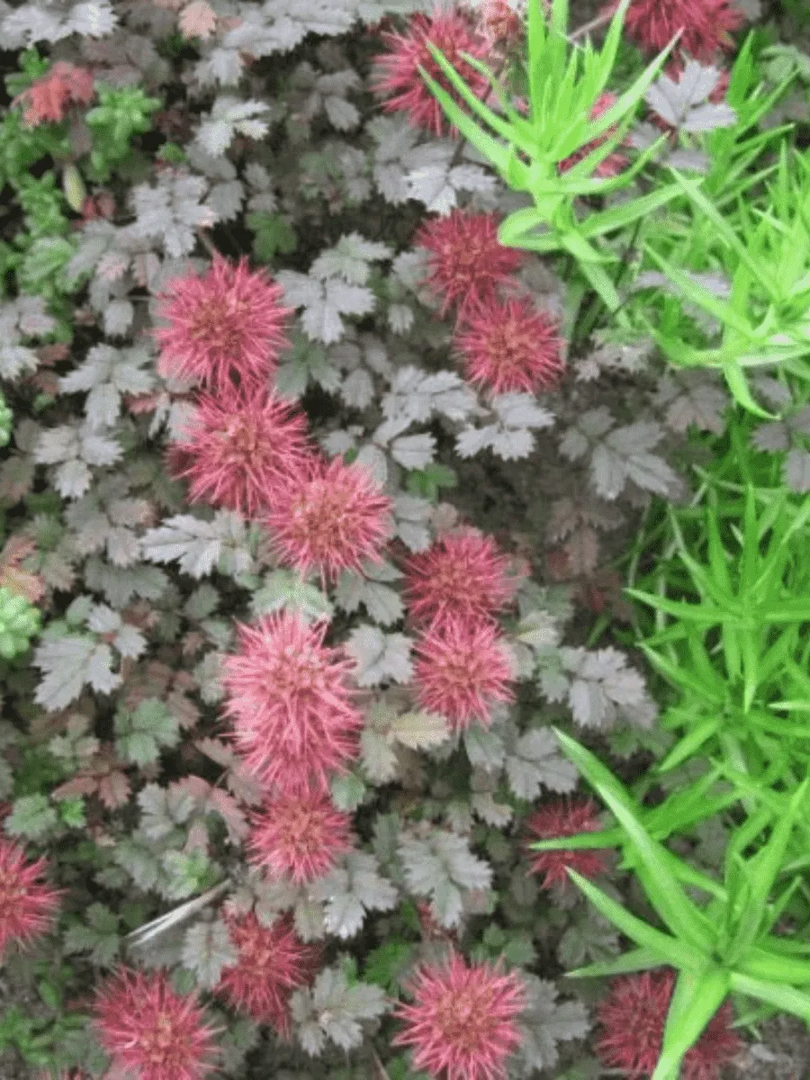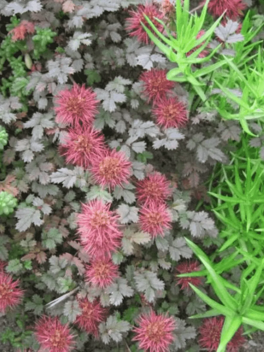 Ацена Буханана (Acaena buchananii) — миниатюрная многолетняя травка, покорившая сердца садоводов своей нежностью и утончённостью. Её густые коврики стелются по земле словно бархатный зелёный покров, украшенный мелкими листьями округлой формы, слегка зазубренными по краям и покрытыми тонкими серебристо-зелёными волосками, придающими растению лёгкий металлический блеск. Цветёт она скромно, но очаровательно: крошечные розово-красные шарики соцветий возвышаются над листвой на тонких стебельках, создавая иллюзию россыпи драгоценных камней среди зелени. Растение предпочитает прохладные влажные места, легко адаптируется к каменистым почвам и тенистым уголкам сада, где создаёт живописную живую кайму вдоль дорожек или альпийских горок. Благодаря своему компактному росту и неприхотливости, ацена становится незаменимым элементом ландшафтной композиции, привнося в неё нотку природной элегантности и очарования дикой природы Новой Зеландии, откуда родом этот удивительный представитель флоры.