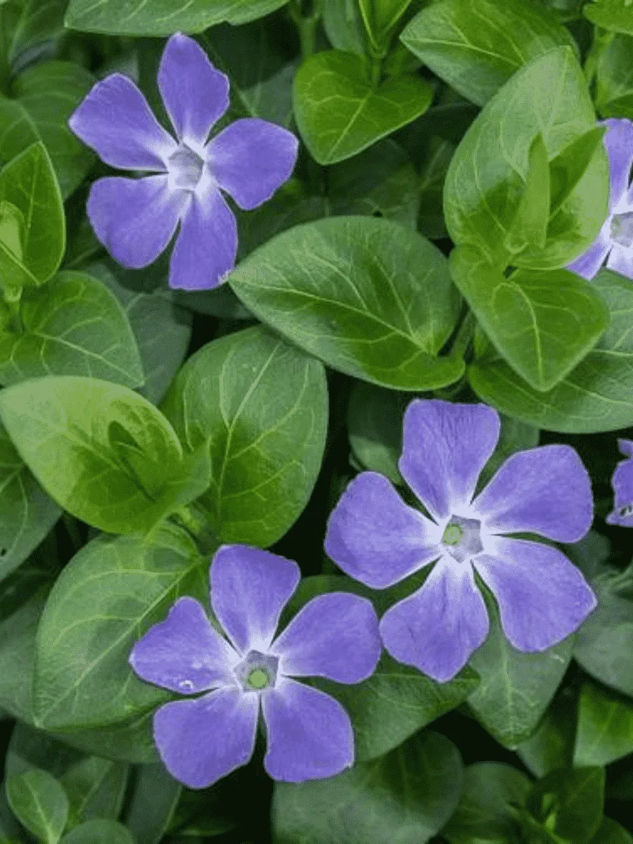 Барвинок большой (Vinca major), многолетнее травянистое растение семейства Кутровые, пленяет взор своей вечнозелёной листвой и нежностью цветения. Стелющиеся побеги образуют плотную зелёную массу, укрывающую почву бархатистым ковром. Листья крупные, яйцевидные, кожистые, тёмно-зелёные, блестящие, словно отполированные природой до зеркального блеска. Цветки одиночные, широко раскрытые, венчают собой длинные цветоножки, распускаясь крупными звёздочками глубокого синего цвета с едва заметным фиолетовым отливом. Сердце цветка украшено тонкой жёлтой трубочкой, придающей особую утончённость общему облику. Растёт преимущественно в тенистых местах, предпочитая влажные почвы и защищённые участки садов и парков, где создаёт живописные композиции, радуя глаз своим спокойствием и благородством.