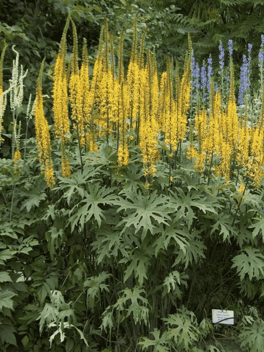 Бузульник Пржевальского — величественное травянистое растение родом из горных районов Центральной Азии, покоряющее своей мощью и благородством облика. Мощная корневая система питает крепкий стебель высотой до полутора метров, увенчанный крупными листьями сердцевидной формы, словно раскинутые зелёные зонтики, украшенные волнистыми краями и бархатистым серо-зелёным оттенком верхней стороны, контрастирующим с серебристо-сизоватой нижней поверхностью. Цветёт бузульник роскошными жёлтыми соцветиями-метёлками, состоящими из множества мелких цветков, собранных в пышную шапку диаметром около тридцати сантиметров, возвышающихся над листвой подобно ярким солнечным фонарям. Растение предпочитает влажные тенистые места, берега рек и ручьёв, где оно образует живописные группы, привлекающие внимание садоводов и ландшафтных дизайнеров своим декоративным видом и способностью создавать атмосферу таинственности и спокойствия.