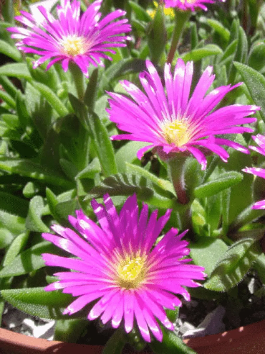 Делосперма Сазерленда (Delosperma sutherlandii) — очаровательное суккулентное растение родом из Южной Африки, покоряющее сердца садоводов своей нежностью и неприхотливостью. Это компактная вечнозелёная многолетняя культура, формирующая плотную ковровидную куртину высотой всего около 5–10 см. Листья мелкие, мясистые, цилиндрической формы, слегка приплюснутые сверху, насыщенно-зелёного цвета с лёгким восковым блеском, придающим растению особую декоративность даже вне периода цветения. Цветки появляются весной и летом, раскрываясь яркими звёздочками диаметром до 4 см, сияющими чистейшим белоснежным цветом с едва заметной жёлтой сердцевиной. Они располагаются прямо над поверхностью листвы, создавая впечатление пушистого снежного покрова среди зелени. Растёт быстро, легко разрастается, заполняя пространство между камнями и трещинами в каменистых садах, прекрасно подходит для альпийских горок, рокариев и контейнерного озеленения. Благодаря способности сохранять влагу в листьях, выдерживает длительные периоды засухи, предпочитая солнечные места и хорошо дренированные почвы.