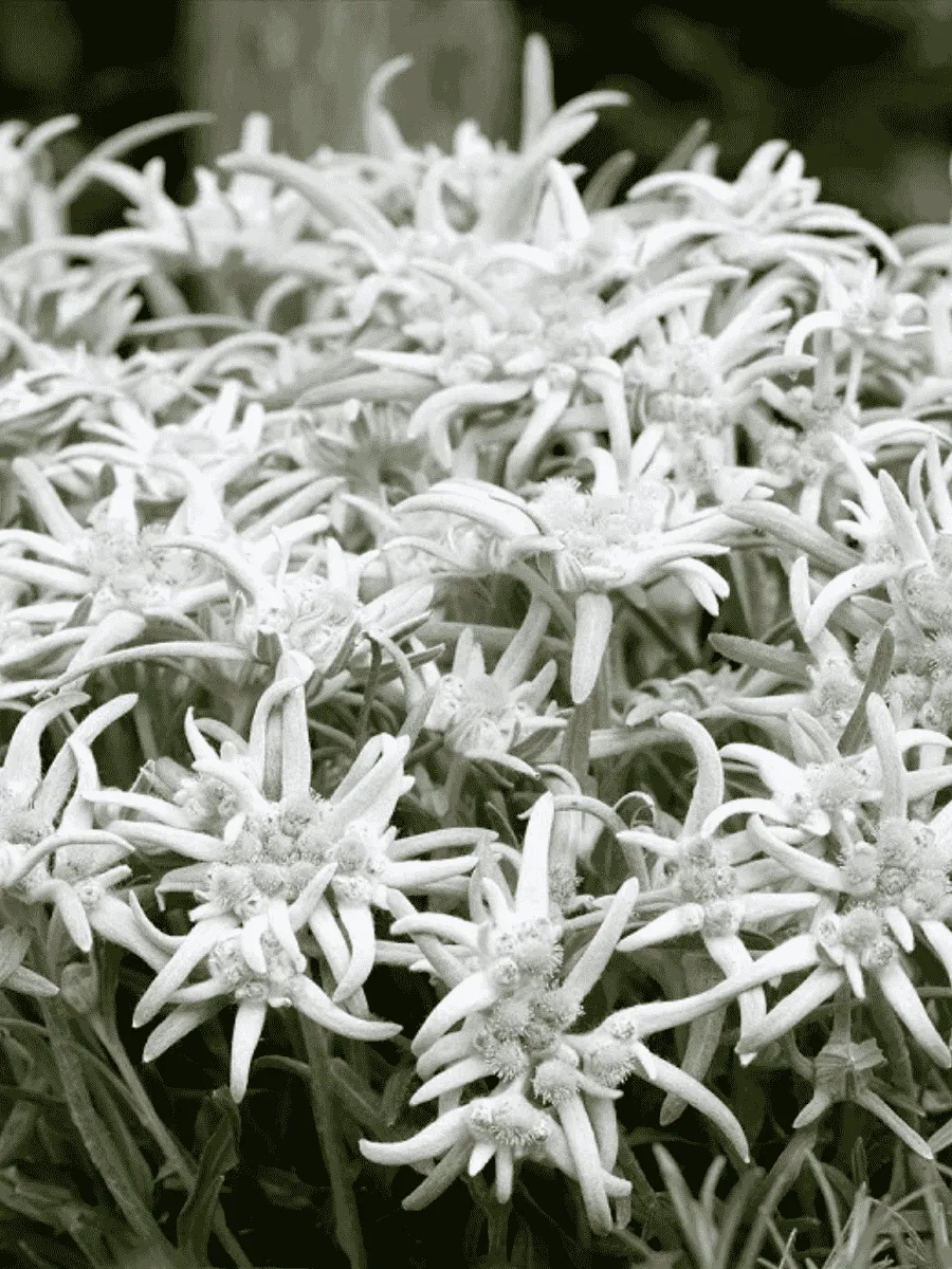 Эдельвейс альпийский (Leontopodium alpinum), словно хрупкий символ горной романтики, предстает перед нами миниатюрным растением высотой всего от пяти до пятнадцати сантиметров, укрывающимся среди суровых скал Альп и Карпат. Его прикорневые листья образуют плотную розетку, густо покрытые серебристым войлоком, придающим эдельвейсу характерный благородный блеск. Листья продолговато-ланцетные, слегка загнутые внутрь, будто бережно охраняют нежные соцветия. Цветки собраны в корзинки диаметром около одного сантиметра, окруженные белыми или серовато-белыми листочками-обёртками, формирующими характерные звездчатые головки. Эти крошечные цветы напоминают маленькие белые звезды, сияющие среди камней и снега. Период цветения приходится на июль-август, когда растение раскрывается навстречу редким солнечным лучам высокогорья. Благодаря своей исключительной выносливости и способности выживать в экстремальных условиях, эдельвейс стал символом чистоты, стойкости и труднодоступности, олицетворяя собой красоту горных вершин Европы.