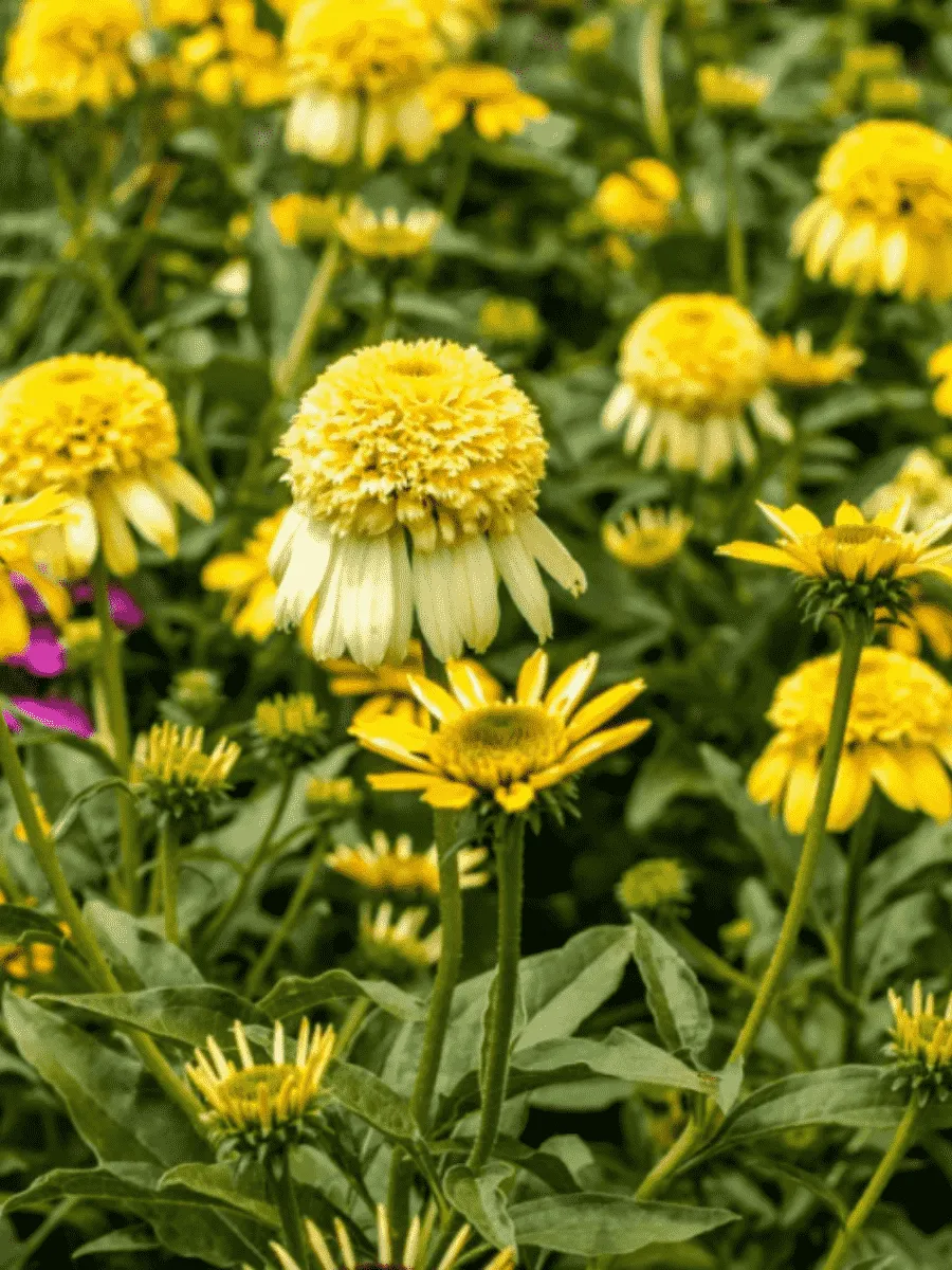 Эхинацея пурпурная сорта *Lemon Drop* пленяет взор нежностью лимонно-жёлтых лепестков, контрастирующих с тёмной сердцевиной соцветий, словно солнечные лучи застряли среди бархатных тычинок. Листья овально-ланцетные, слегка шероховатые, насыщенно-зелёные, придают растению благородную строгость и подчёркивают изысканность цветков. Стройные стебли высотой до метра несут крупные корзинки диаметром около восьми сантиметров, возвышаясь над листвой подобно золотистым фонарикам. Цветёт обильно и продолжительно, начиная с июля и заканчивая первыми заморозками, привлекая пчёл и бабочек своим ароматом и ярким обликом. Предпочитает хорошо дренированные почвы и солнечное местоположение, легко адаптируется к различным климатическим условиям, украшая сады и парки своей жизнерадостной красотой.