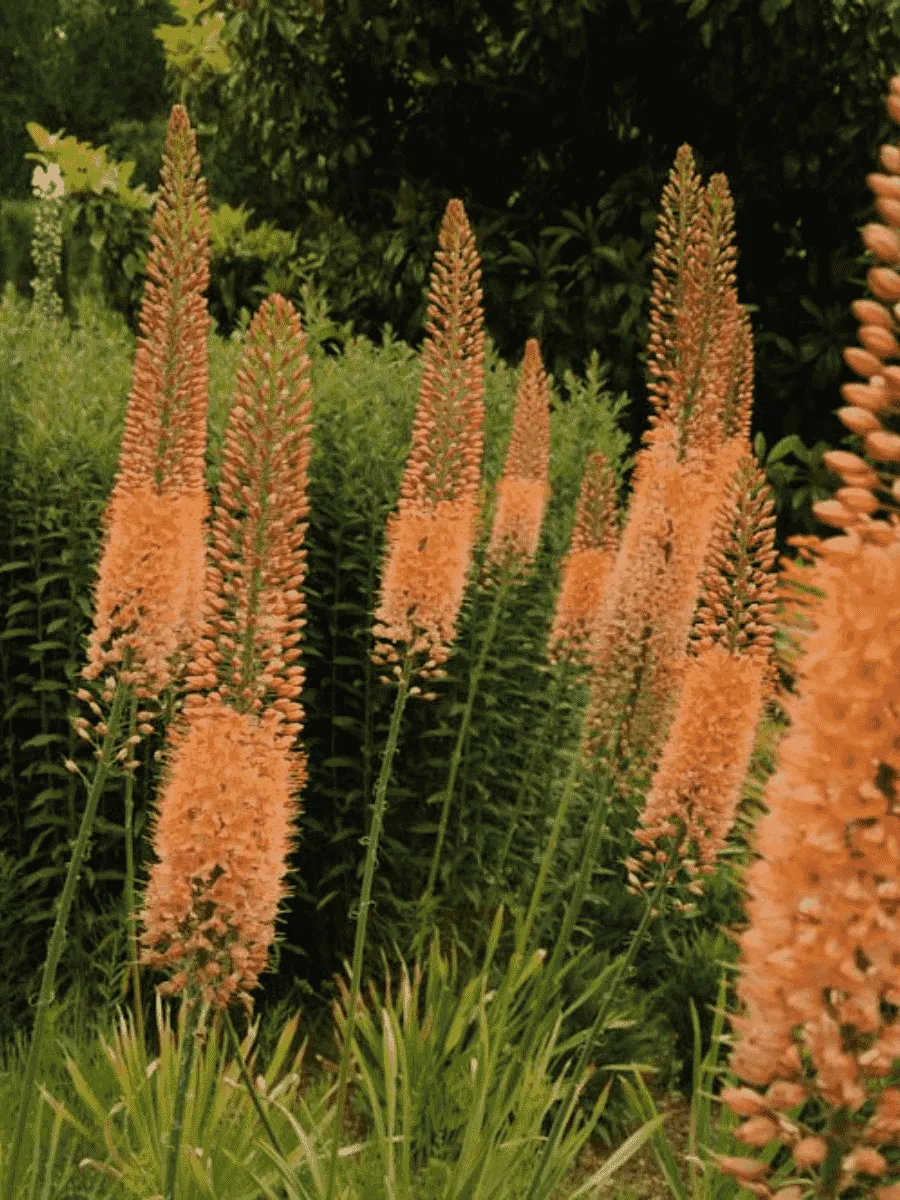 Эремурус сорта *Cleopatra* пленяет взор роскошной красотой и величием своего облика. Это многолетнее травянистое растение достигает высоты до двух метров, поражая воображение стройностью мощных стеблей, увенчанных крупными пушистыми свечками соцветий насыщенного оранжево-красного цвета. Листья узколанцетные, серо-зелёные, собраны в прикорневую розетку, создавая живописную зелёную основу для эффектных цветов. Цветёт эремурус поздней весной—ранним летом, раскрывая сотни мелких трубчатых цветков, собранных в плотные цилиндрические кисти длиной около полуметра. Растение предпочитает солнечные места и хорошо дренированные почвы, распространено преимущественно в садах и парках умеренной зоны Евразии, где становится истинным украшением ландшафта благодаря своей экзотической привлекательности и благородному виду.