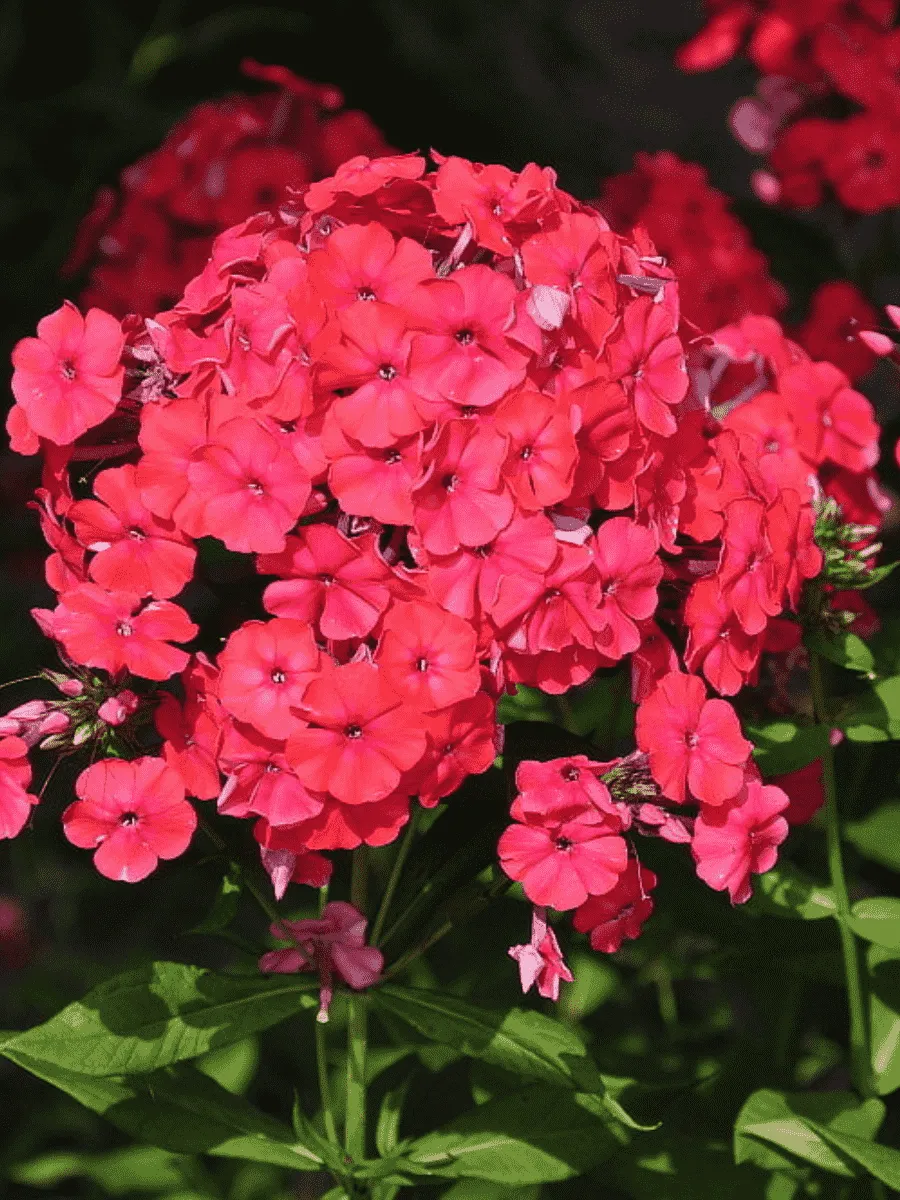 Флокс метельчатый 'Red Riding Hood' пленяет взор роскошной шапкой густых соцветий насыщенного рубиново-красного цвета, словно искрящихся капель вина на фоне изумрудной зелени листвы. Его листья овально-ланцетные, гладко очерченные, слегка блестящие, образуют пышную крону, подчеркивая элегантность цветков. Цветки мелкие, трубчатые, собраны в крупные пирамидальные кисти, возвышающиеся над кустом подобно ярким факелам, горящим среди сада. Растение отличается компактностью и аккуратностью форм, достигая высоты около полуметра, идеально подходит для бордюров, миксбордеров и контейнерного озеленения. Обильное продолжительное цветение начинается в июне и длится до конца лета, наполняя сад ароматом свежести и очарованием нежности.